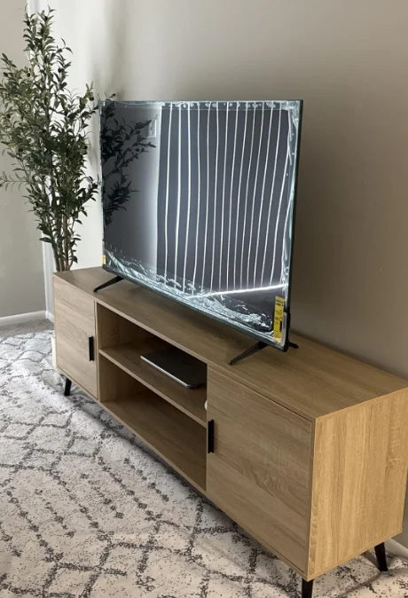 - Large Storage Space: This entertainment center has two open shelves and 2 spacious cabinets to store DVDs, media players or gaming devices. Everything is in one small space and all 3 shelves are height adjustable. The bottom-to-floor clearance is 3 inches, making cleaning all the easier.