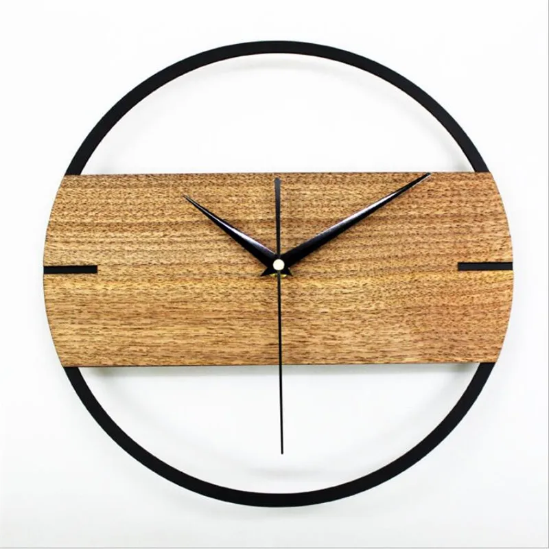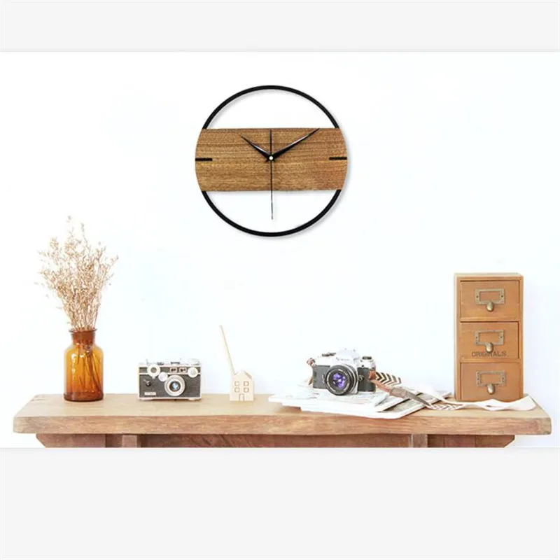 Minimal Wall Clock Simple European Living Room Hanging Clocks Wooden Creative Household Wall Watch Horologe