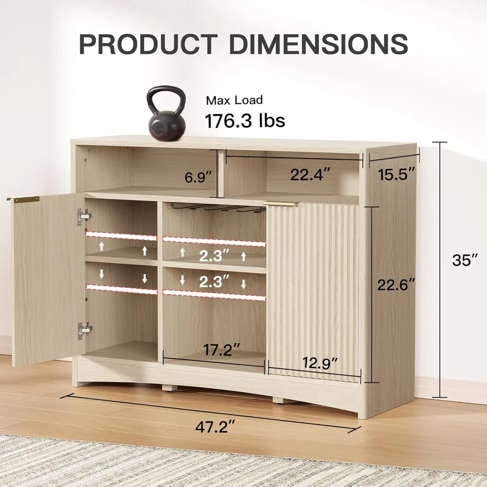 • 【Modern Multi-Purpose Cabinet】Sized at 47.2" W × 15.5" D × 35" H, this cabinet easily transitions between coffee bar, buffet sideboard, entryway console, or media cabinet. Its clean silhouette and fluted texture blend modern elegance with practical storage—ideal for dining rooms, kitchens, or living spaces.