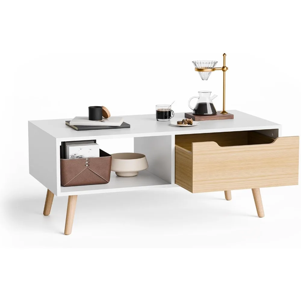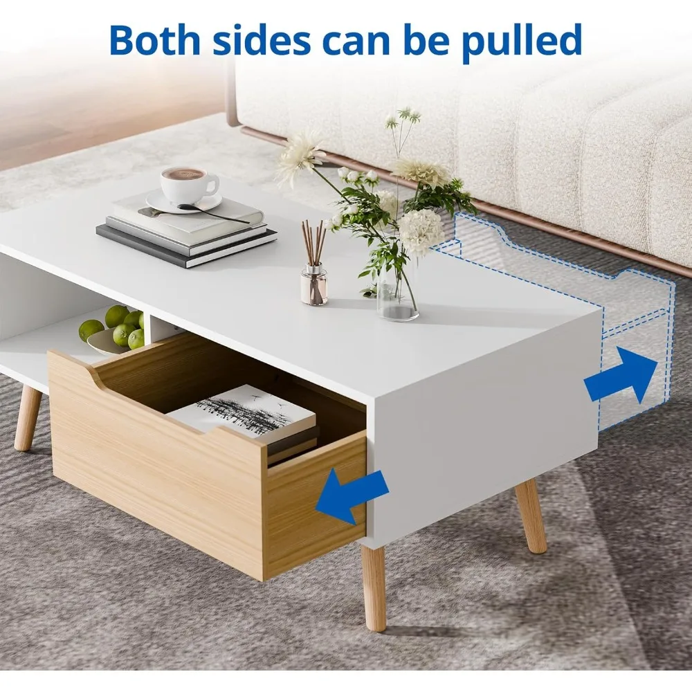 - Ample Storage Space: The coffee table includes a double-sided wooden drawer and an open storage space; you can put some important documents, pens, CDs, toys in the drawer, which acts as a dust barrier; you can easily store and grab books, magazines, snacks, phones, or board games in the open storage space; you can place anything on top of your desk, including plants, photos, a TV, a projector and a fruit tray