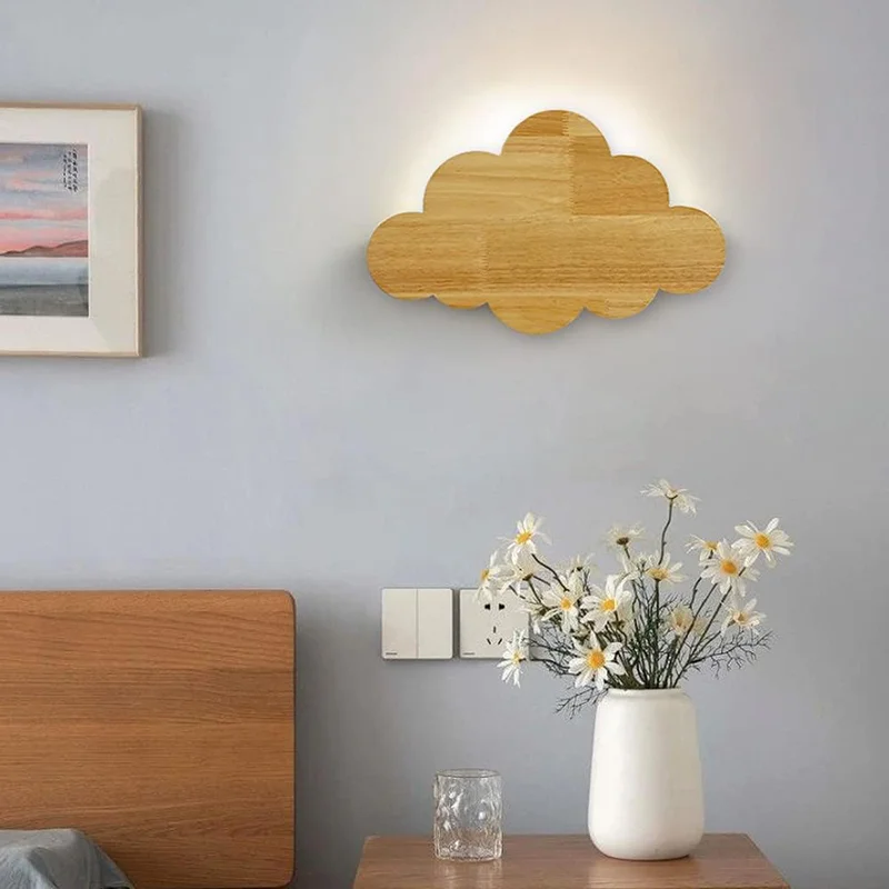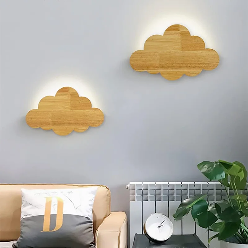 [Nordic Creative Illuminations for bedside]: Modern cloud-shaped wooden wall sconce lamps, contemporary living room light fixture geometric wall mount lighting fitting kits, minimalist wall lanterns can complement the decoration of the space and add more personality to your home decoration.