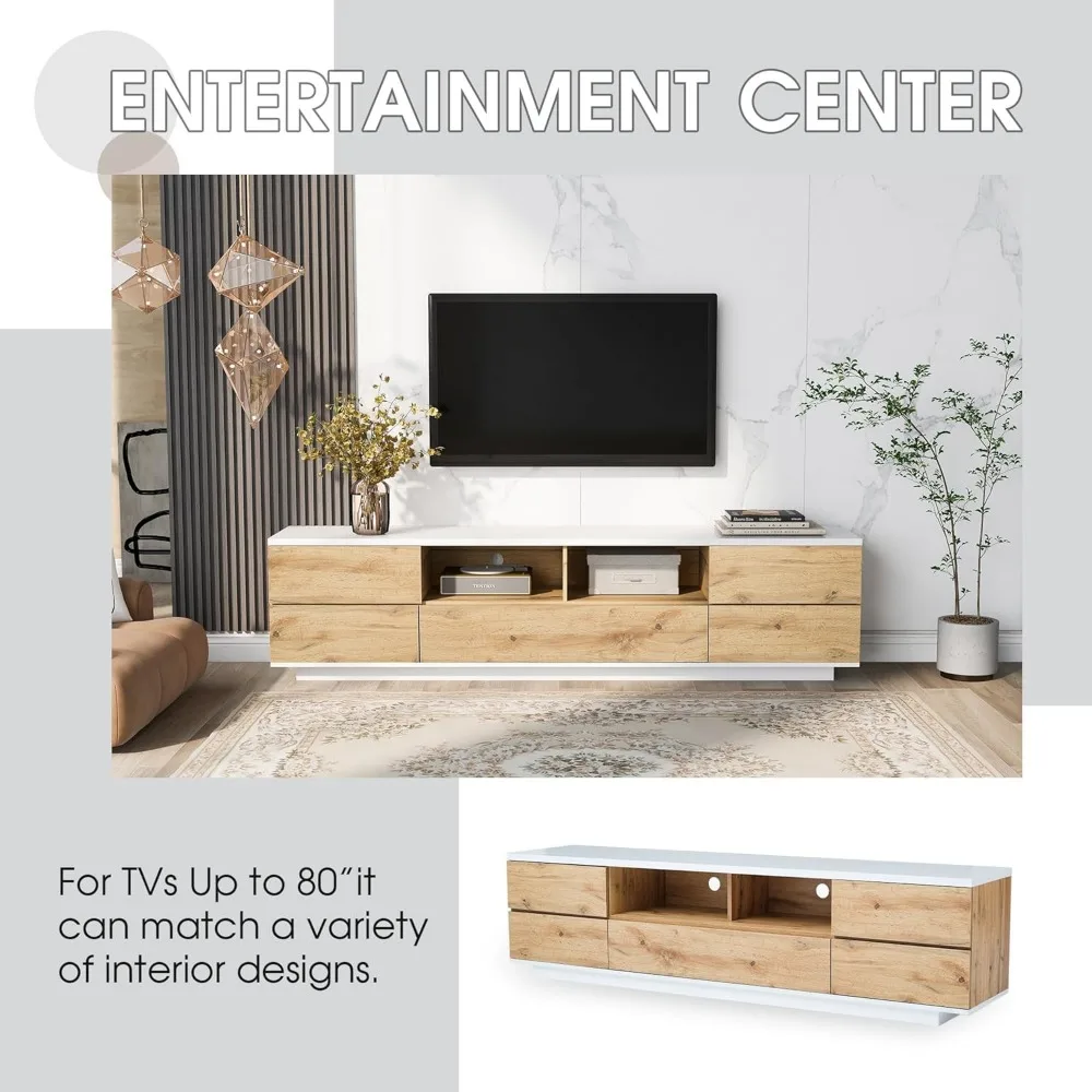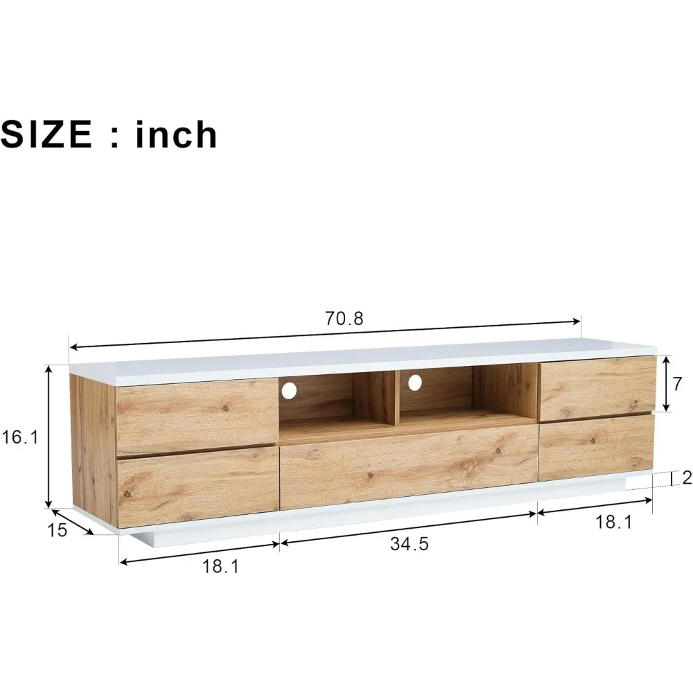 - Fit TVs up to 80": Our TV cabinet mereasures 70.8"L x 15"W x 16.1"H, big enough to accommodate TVs up to 80". The generous top surface is perfect to support 55" 65", 70", 80" TVs in plasma, LED, OLED, and LCD options.