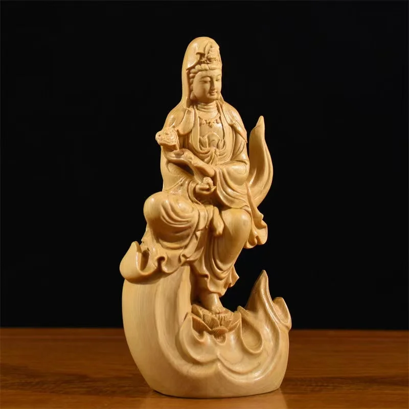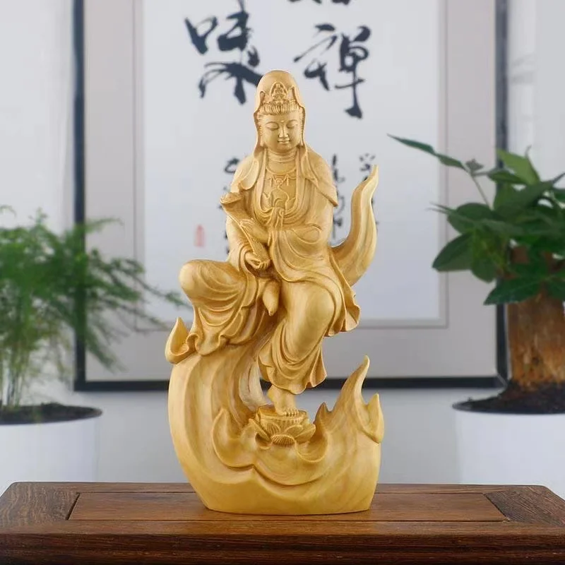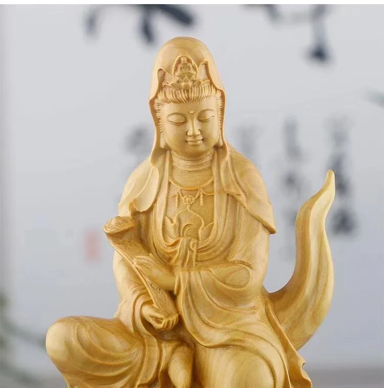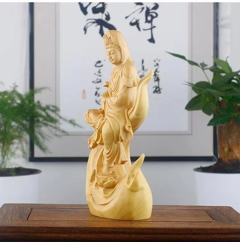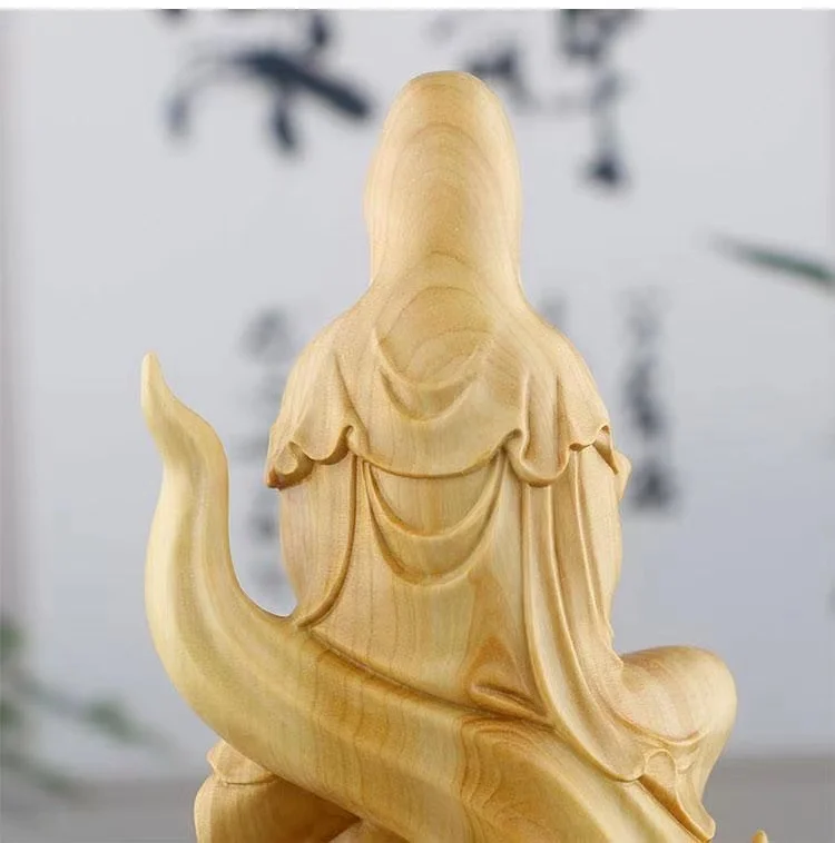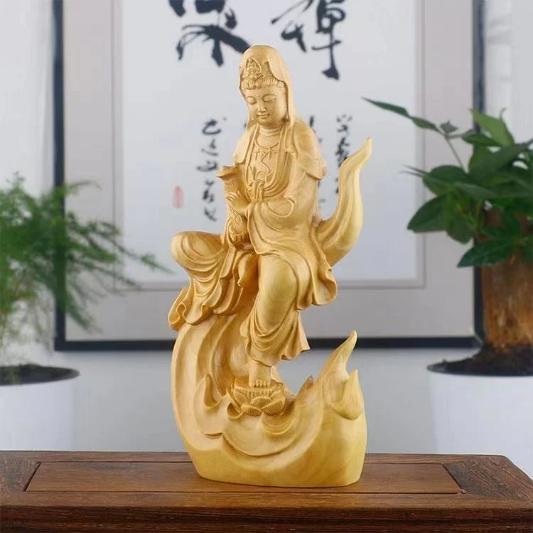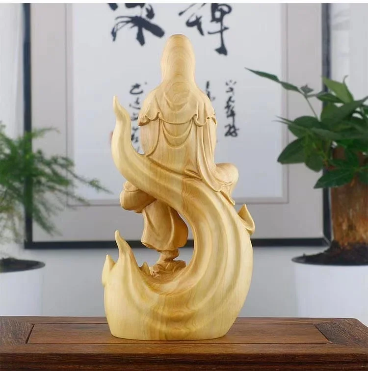 Natural Cypress Wood Hand Carved Statue Home Decoration