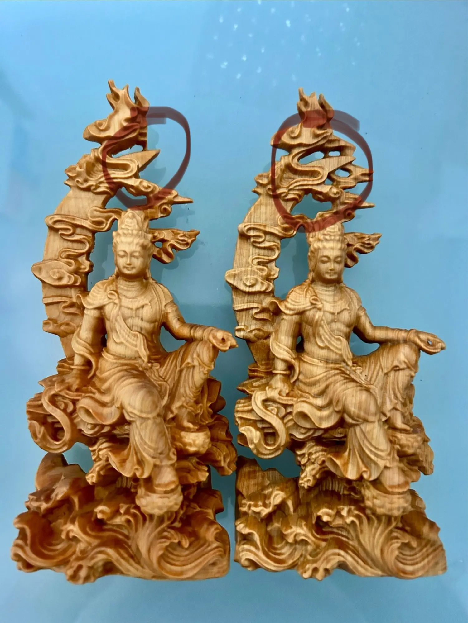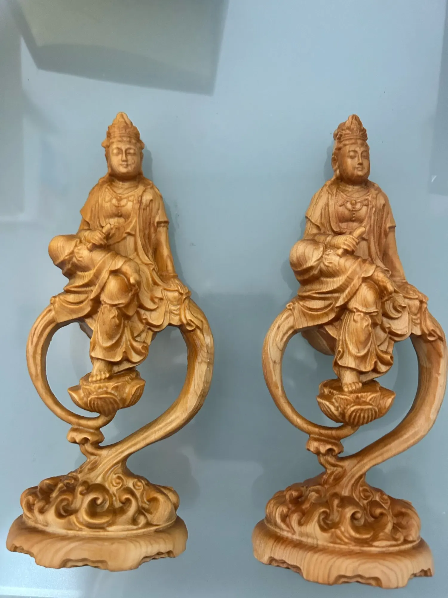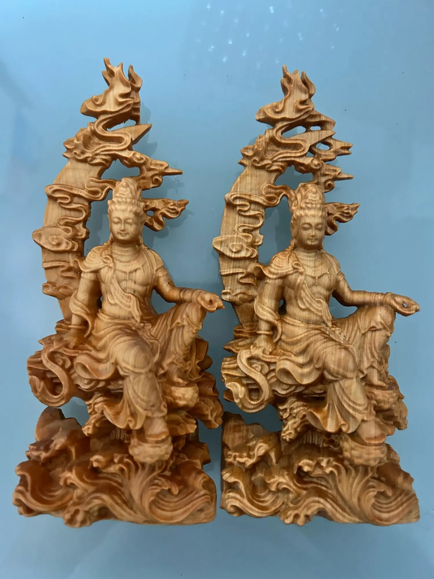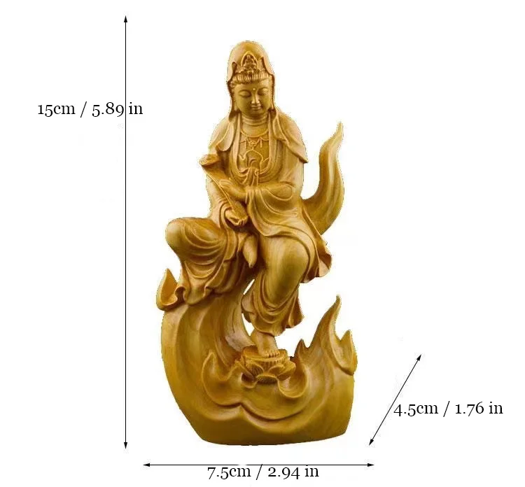 Natural Cypress Wood Hand Carved Statue Home Decoration