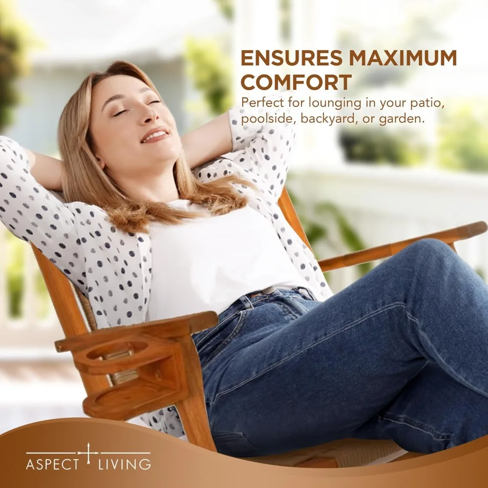This rocking chair is crafted from premium Acacia wood, which is renowned for its durability and strength, offering a sturdy and reliable seat. It is designed to be versatile, suitable for both indoor and outdoor use, allowing you to enjoy its comfort in various settings. The chair features a convenient built-in beverage holder, keeping your drink within easy reach while you relax. With a weather-resistant design, it stands up to different weather conditions, ensuring its long-lasting use. It has a generous weight capacity of 330 pounds (150 kilograms), providing a secure and stable seating option for a wide range of users. The 65245 Vega Outdoor Rocking Chair is a harmonious blend of comfort and style, enhancing your relaxation with its well-designed features. It's perfect for creating a relaxing space on your porch, patio, or living room.