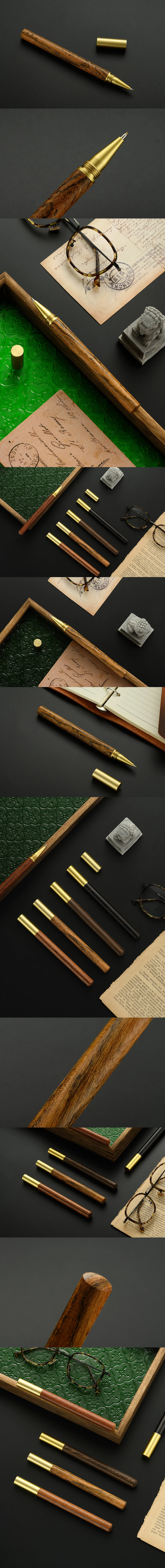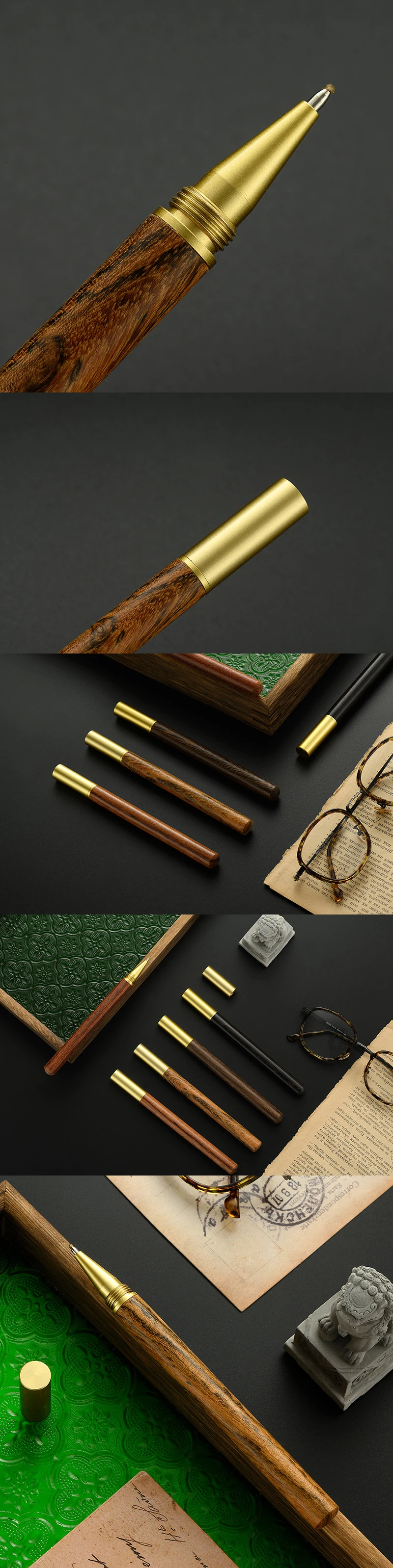 New Vintage Sandalwood Wood Gel Pen Personalized Custom Logo Engrave Names Brass Cap Wooden Pens Teacher Gifts School Supplies