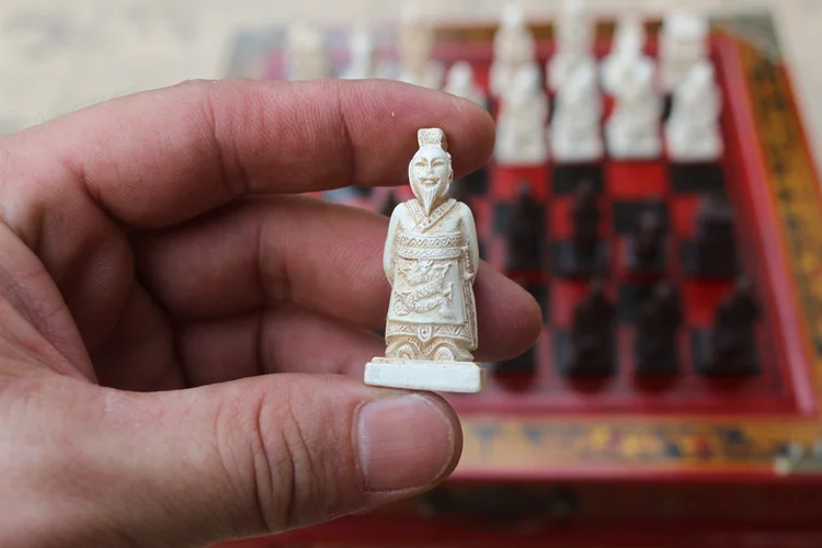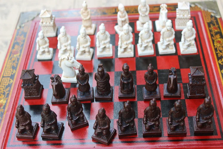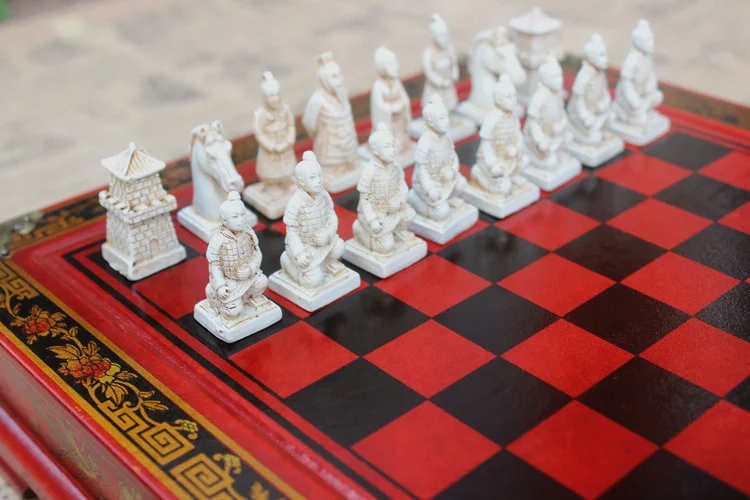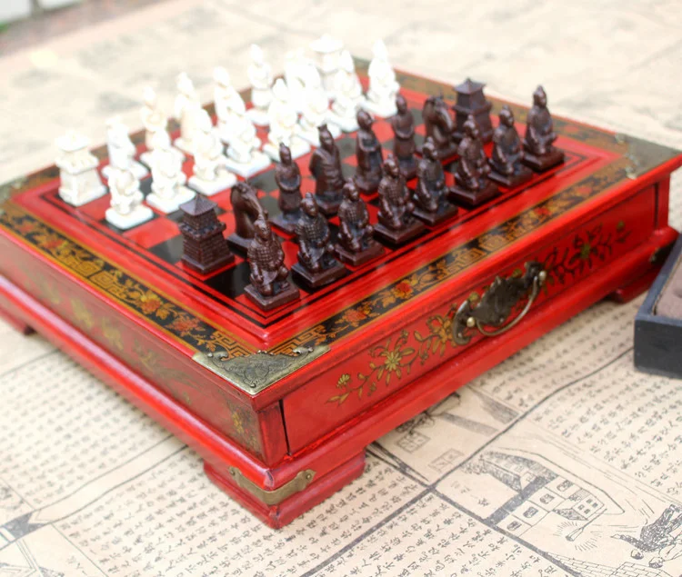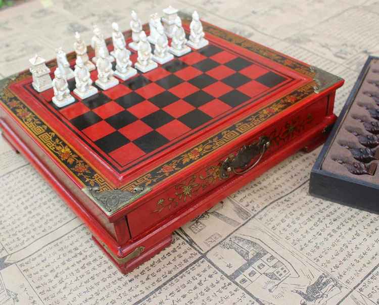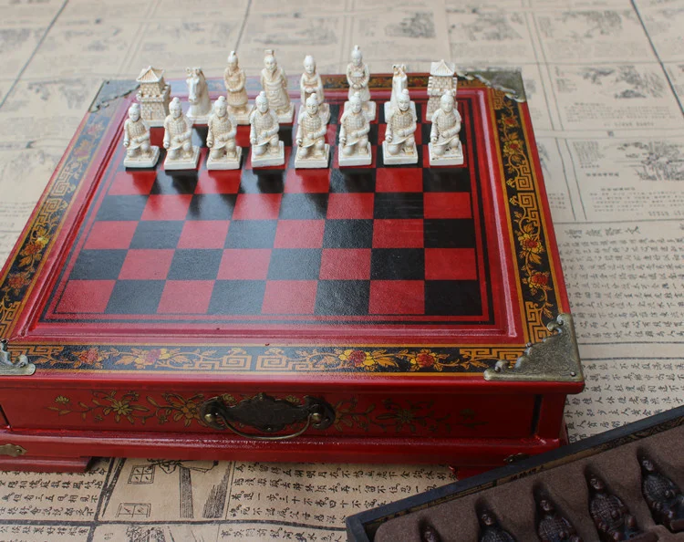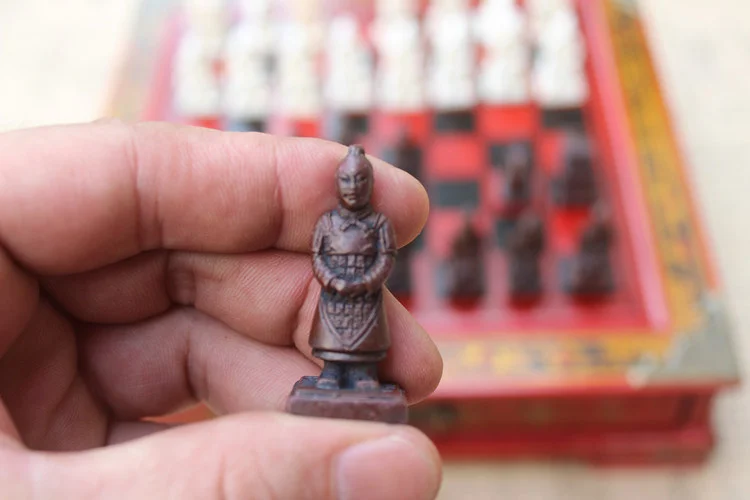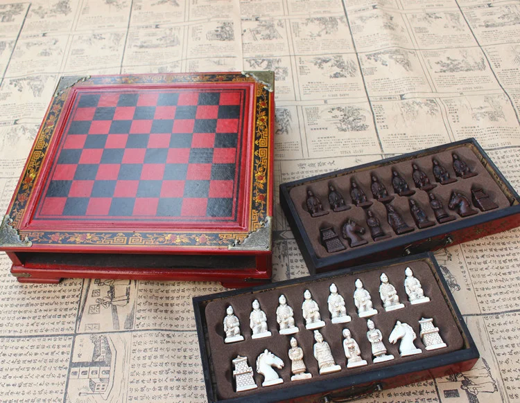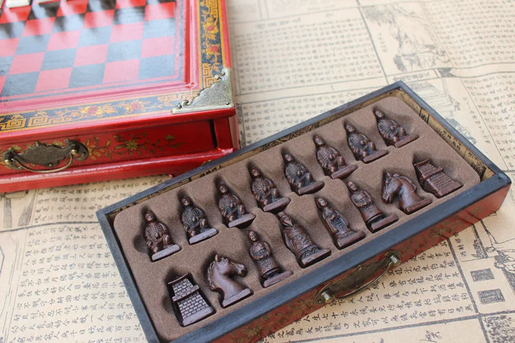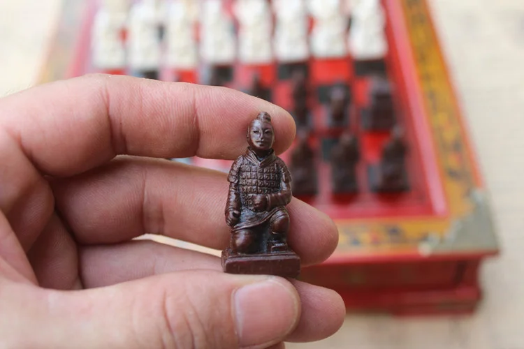 New Wood Chess Chinese Retro Terracotta Warriors Chess Wood Do old Carving Resin Chessman Christmas Birthday Premium Gift