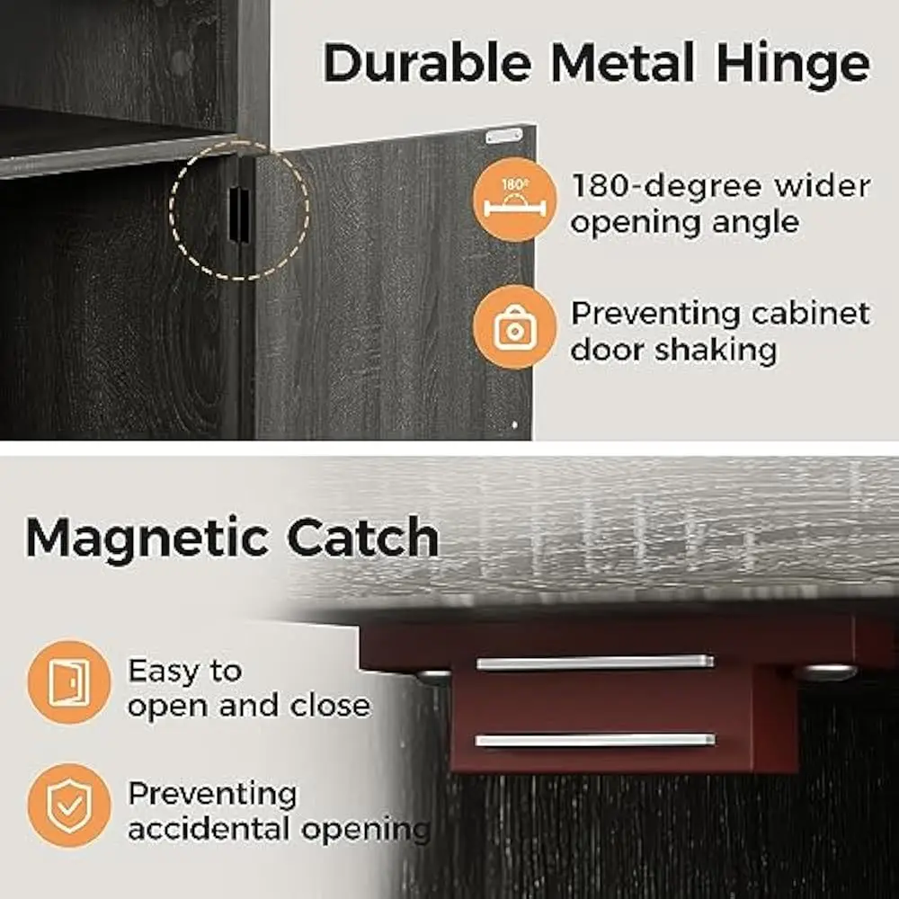 • 【All About Easy-Peasy Access! 】Product Size: 16 "D x 16 "W x 25 "H.The side table greets you with a generous 180° opening with metal hinges for easy access. The doors are held in place by a magnetic metal latch, adding a touch of convenience and security.