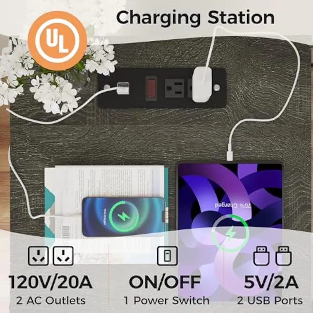 • 【UL Certified Charging Station with Control Switch】The tall nightstand features a convenient control switch for easy power management. With 2 USB ports and 2 plug sockets, you can power up your smartphone, tablet, and other gadgets right by your side.