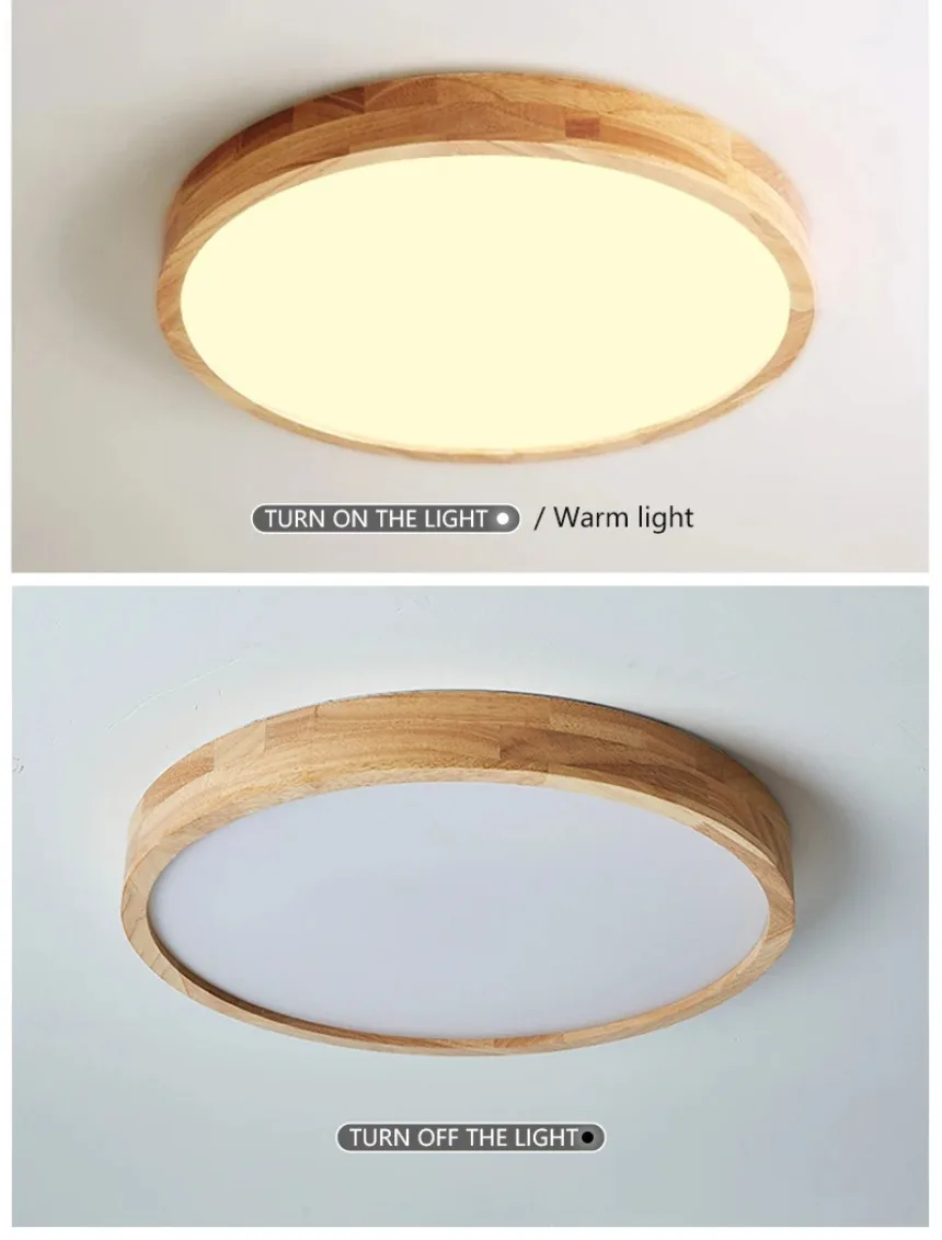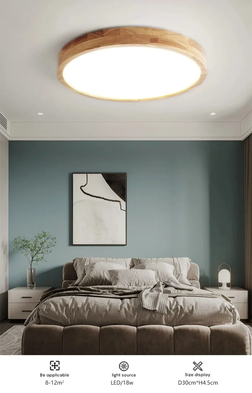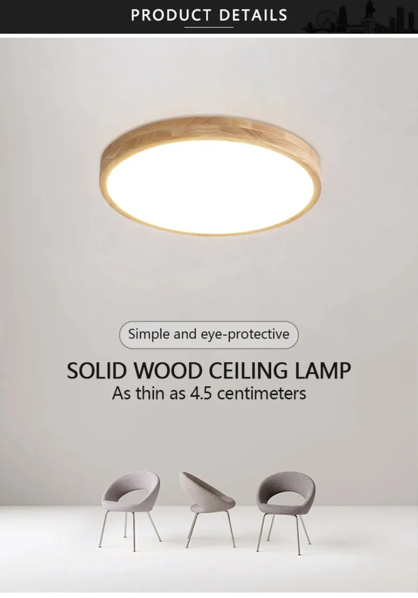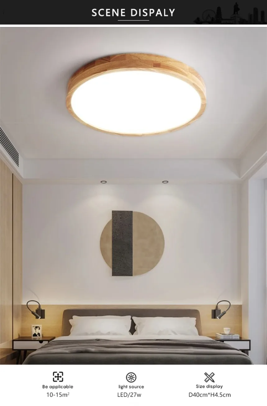 Nordic Solid Wood LED Ceiling Light Round Wood Grain Lighting Lamps Kitchen Living Room Bedroom Indoor Home Decor Ceiling Lamp