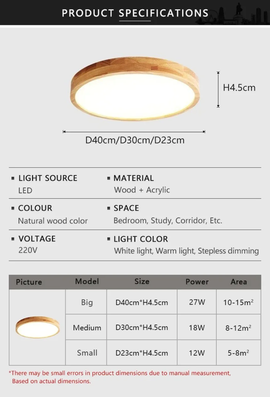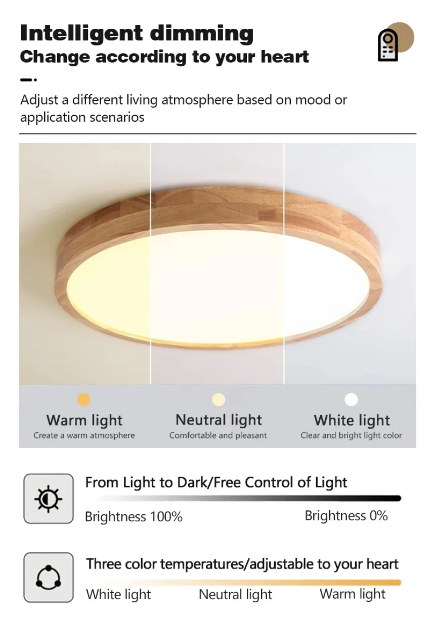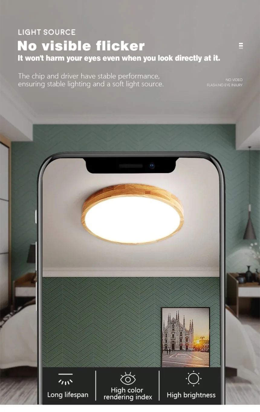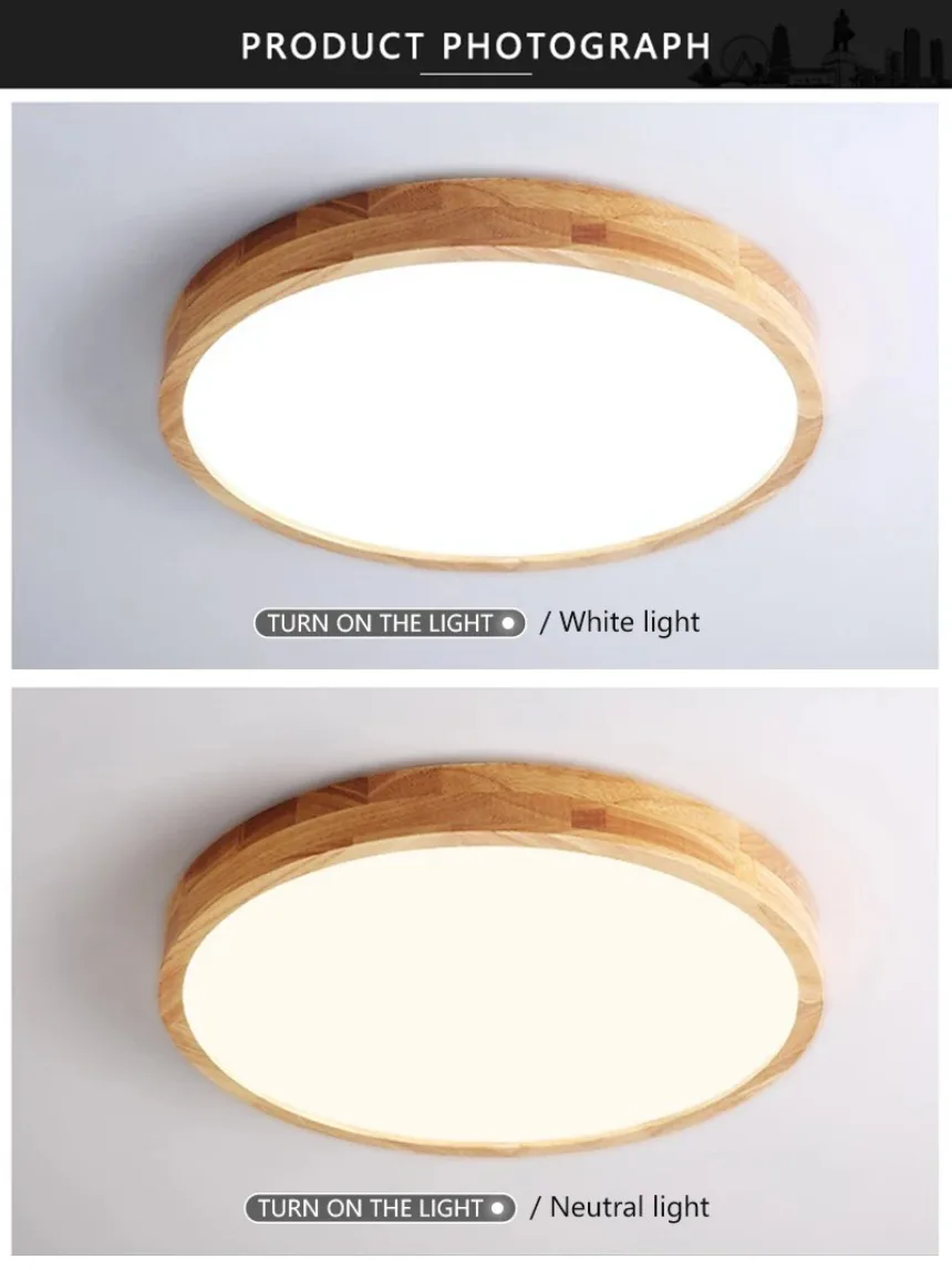 Nordic Solid Wood LED Ceiling Light Round Wood Grain Lighting Lamps Kitchen Living Room Bedroom Indoor Home Decor Ceiling Lamp