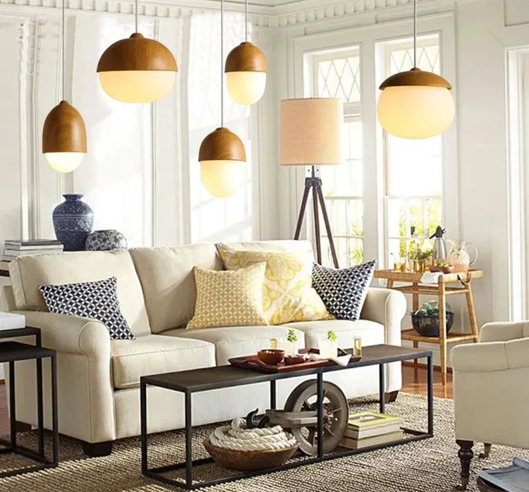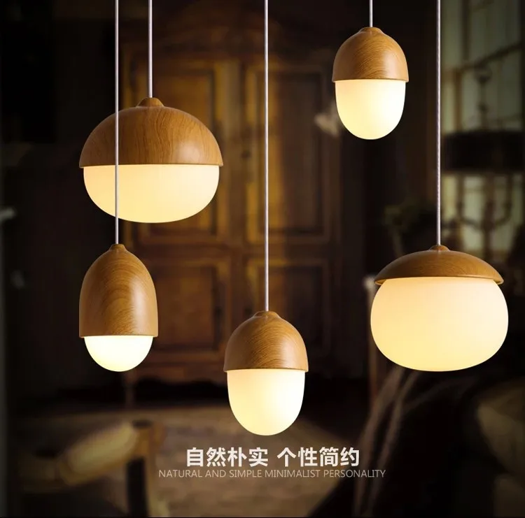 Nuts Acorn Small Mushrooms Chanderlier glass Milky Ball Glass Wood grain Iron modern pendant lamp led Pine cone pendant light