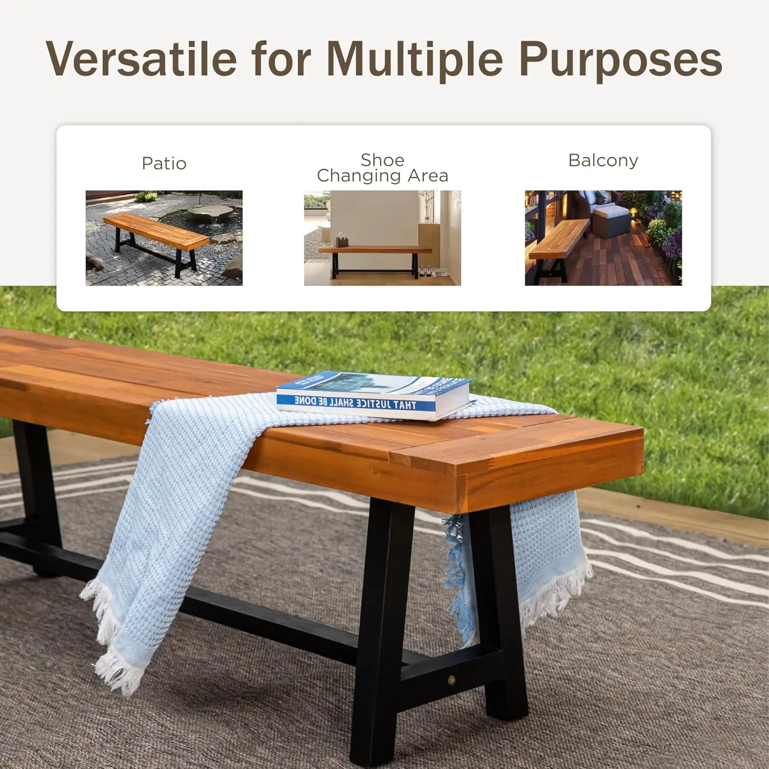 100% Acacia Wood Bench- Longer seat length and double oil finish, much more solid and sturdy than other normal patio benches, definitely ensure the durability and high grade quality that each furniture can hold up to 550 pounds force deployed