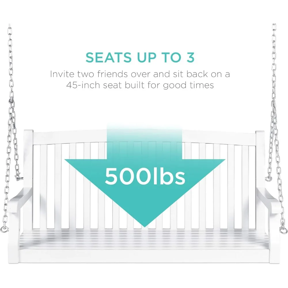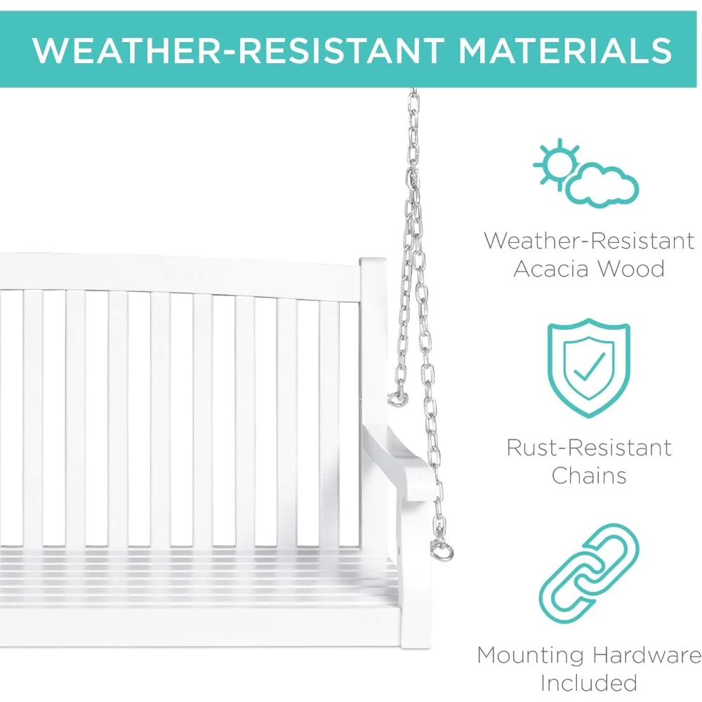 This item features a weather-resistant acacia wood construction and zinc-oxide coated steel chains, ensuring durability and longevity. The seat is designed with a weighted base and four anchor points, along with two steel mounting chains, to provide stability and prevent tipping. It comfortably accommodates up to three people with a high weight capacity of 500 pounds and a spacious 45-inch seating area. The set includes anchor bolts and mounting hardware, allowing for easy installation in various outdoor locations such as yards, porches, patios, or decks. The classic design boasts an open structure to withstand wind, armrests for added comfort, and an extra-thick seat for balance. The overall dimensions of this outdoor seating are 48 inches in length, 20.5 inches in width, and 22 inches in height.