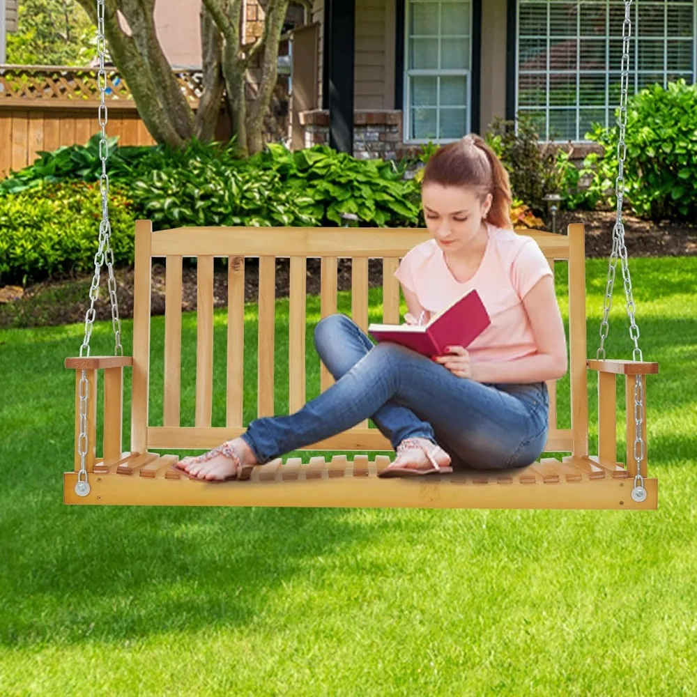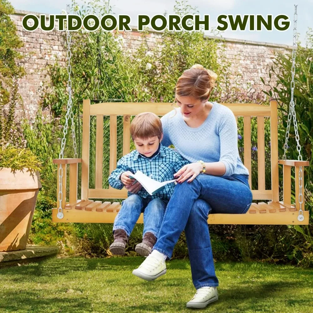 - Stylish Natural Wood Finish for Any Outdoor Space:With its sleek, ergonomic design and natural wood grain, this swing blends seamlessly into decks, porches, or gardens. A charming yet functional addition to your outdoor decor, creating a cozy retreat for relaxation.