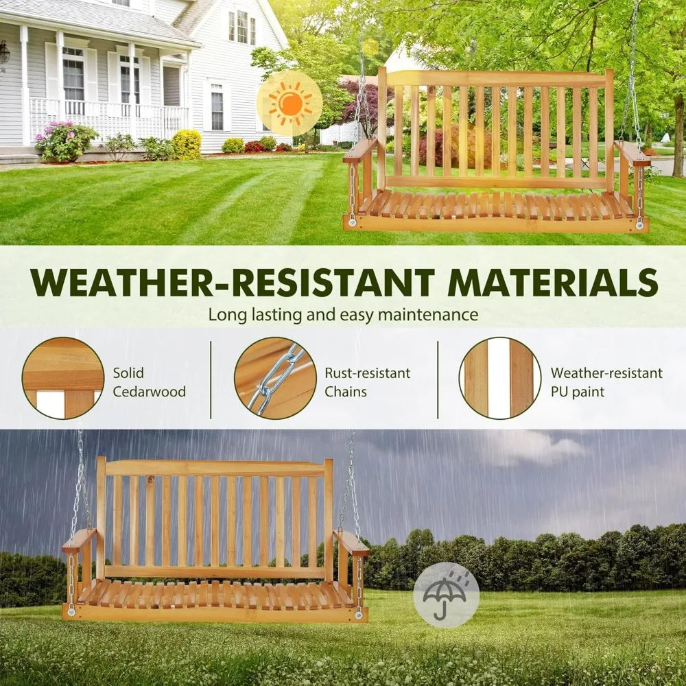 - Heavy-Duty Fir Wood Construction:Built to last with sturdy fir wood and reinforced slats, this swing is coated in 3-layer waterproof PU paint for superior weather resistance. Rain or shine, it withstands sun, moisture, and outdoor wear, making it ideal for patios, gardens, or backyard use.