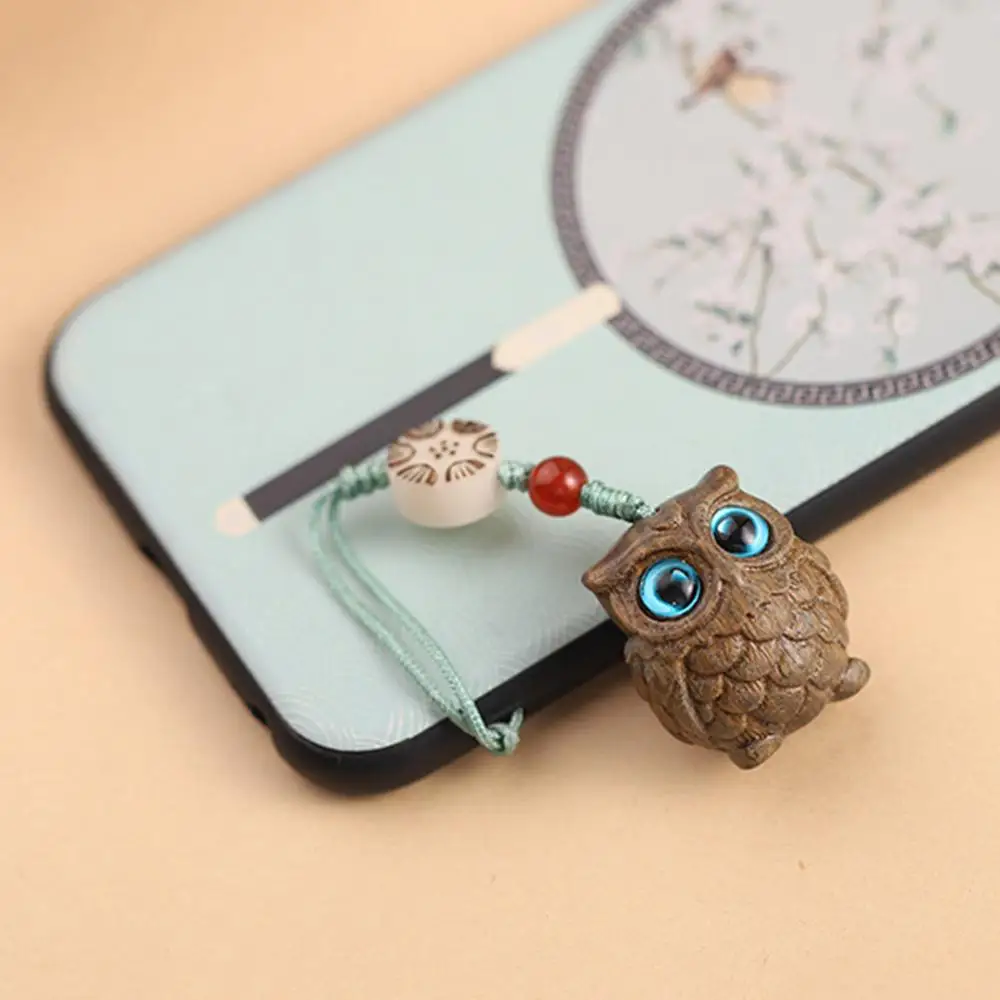 4.Stand out Style: Exude old-world charm Bag Pendant Keychain Dolls with this unique phone strap featuring a fusion of owl-inspired motifs and eco-friendly green sandalwood