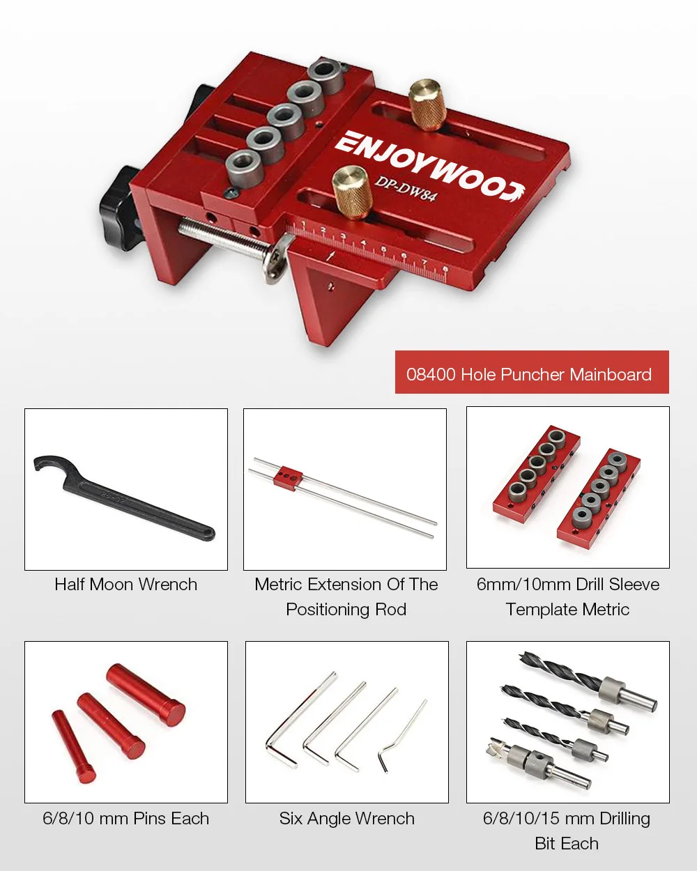 -The anodized surface, Resistant to corrosion,quickly with accuracy. Designed for drilling 6,8 &10mm dowel holes