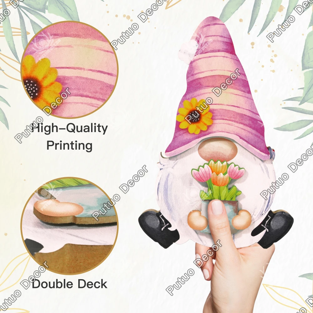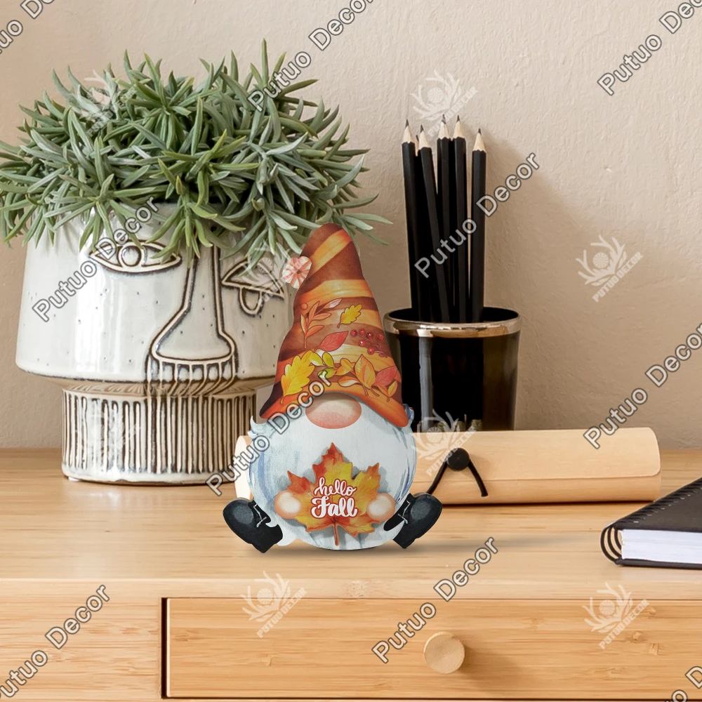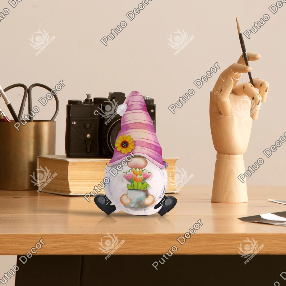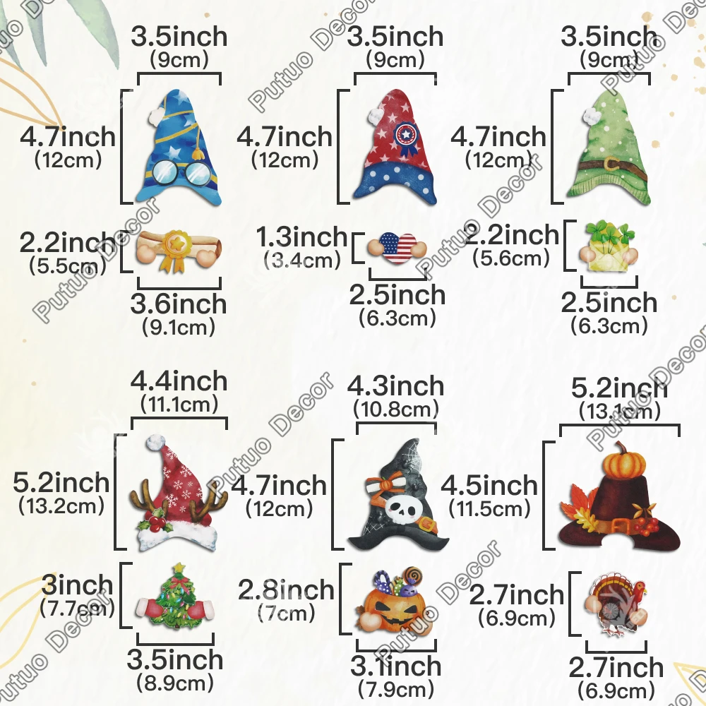 Putuo Decor 1pc Gnome Shaped Interchangeable Wooden Table Decor with 12 Sets of Changeable Velcro Icons,Gifts for Christmas