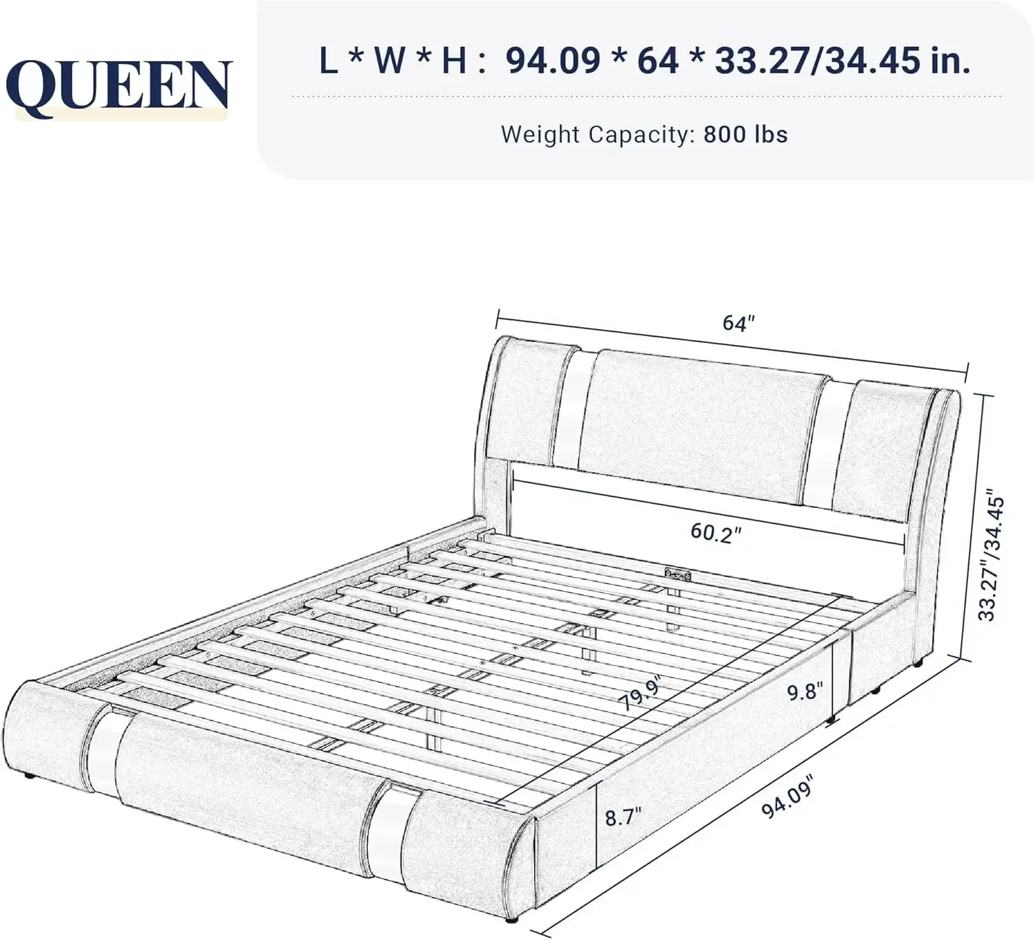 - Adjustable Headboard: The bed's curved headboard is designed for you to lean and read on bed in a more comfortable way. The headboard can be adjusted from 33.5" to 35.4"(Top to ground). 10-12'' mattress recommended