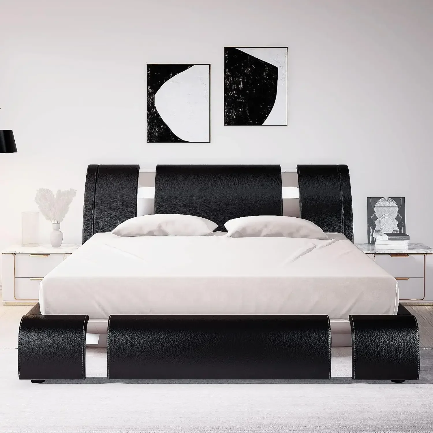 - All-Round Design: This chic platform bed frame, upholstered by lasted leather, has all-around soft surface with no sharp edges, which can protect your beloved ones