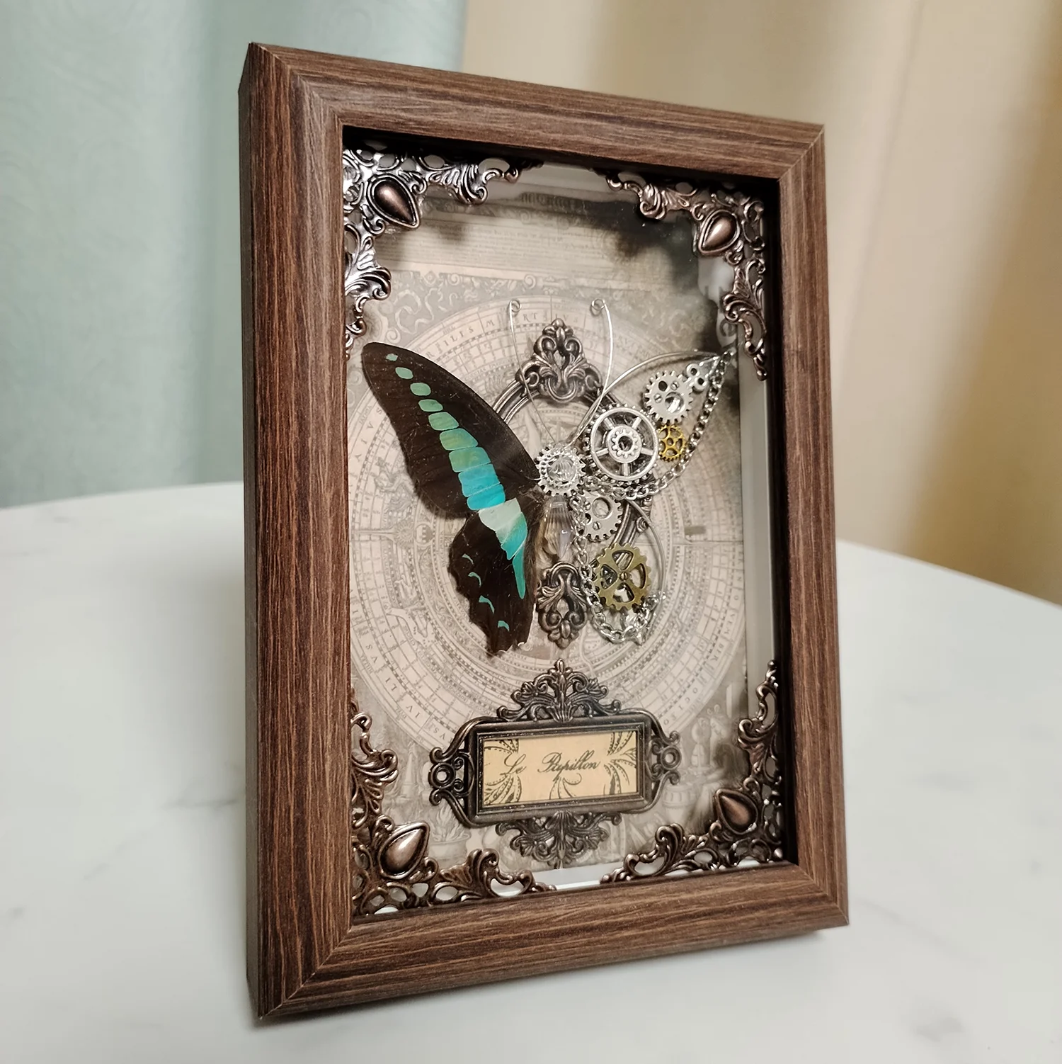 Real Butterfly Specimen Framed 3D Mechanical Butterflies Collection Punk Retro Style