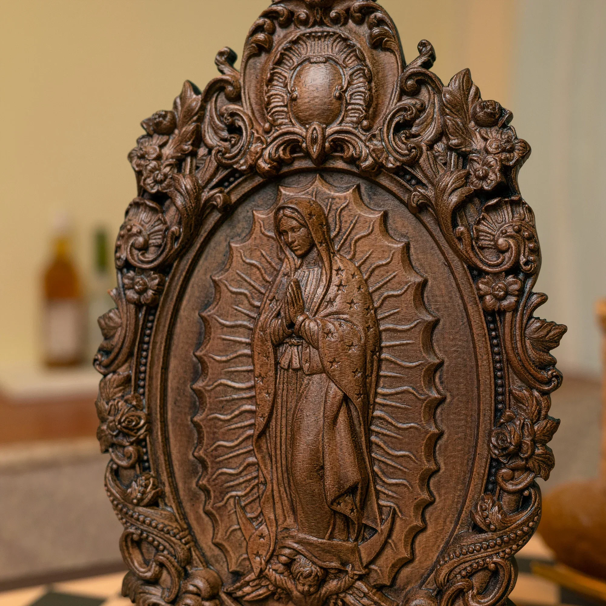 ·Accessories: hanging buckle Our Lady of Guadalupe, patron saint of Mexico and the Americas, is one of the most recognizable Marian images of the Catholic Church. This beautiful wood carving comes from BGCOPPER Studio and is crafted from natural beech wood. This incredibly detailed carving will look amazing hanging on the wall in any room of your home or in your office.