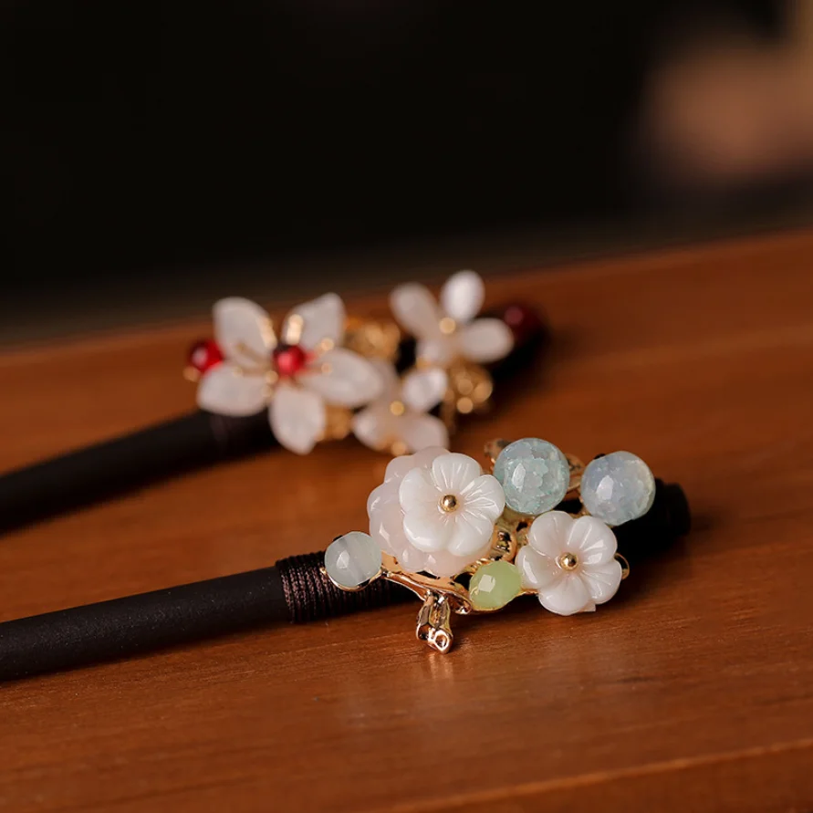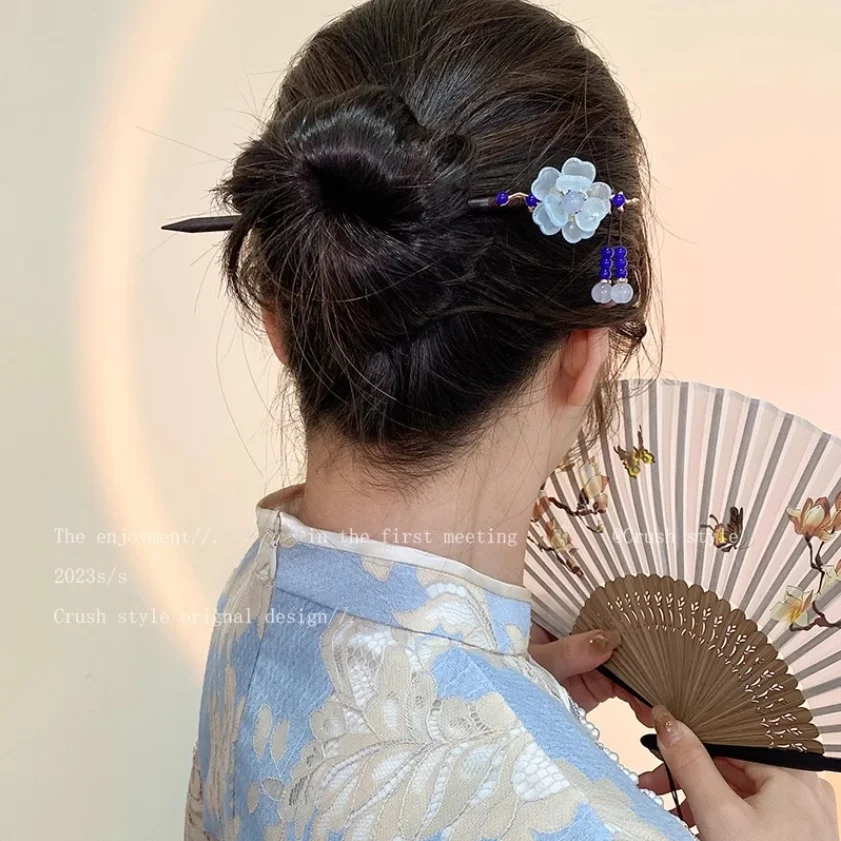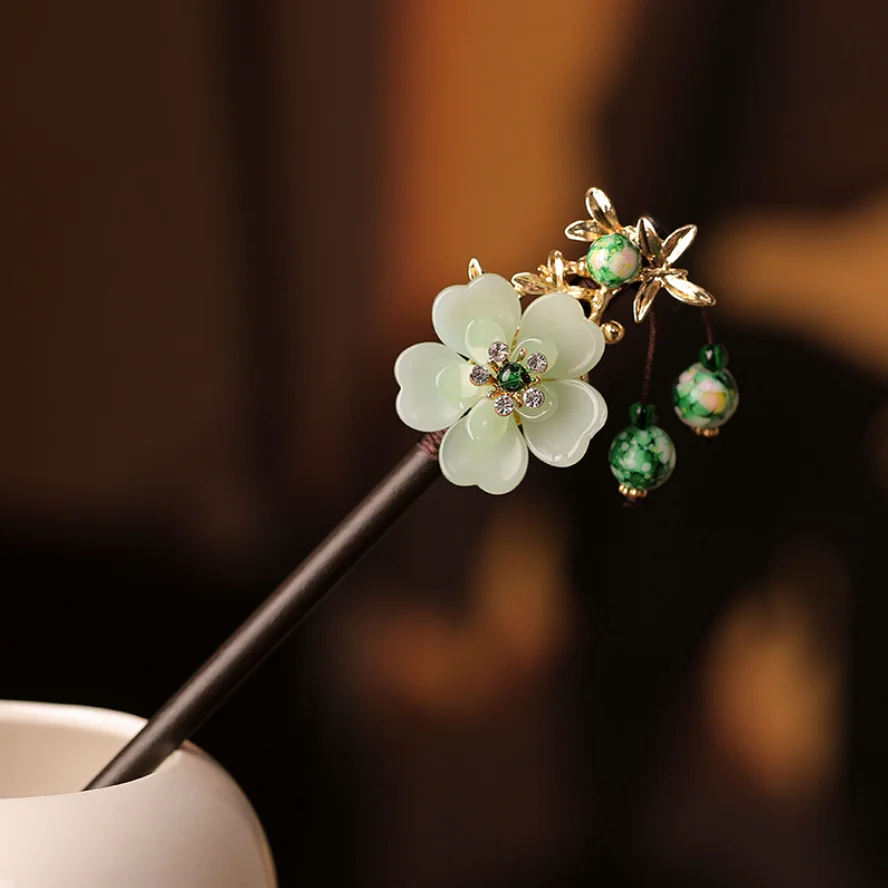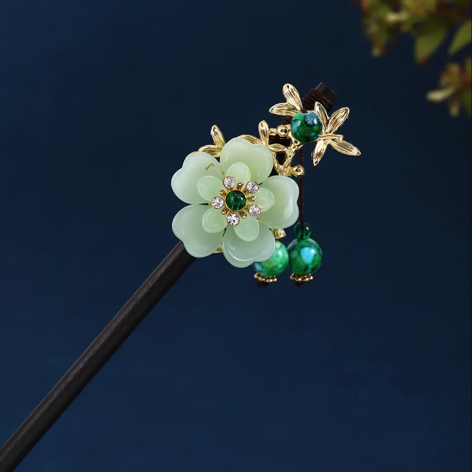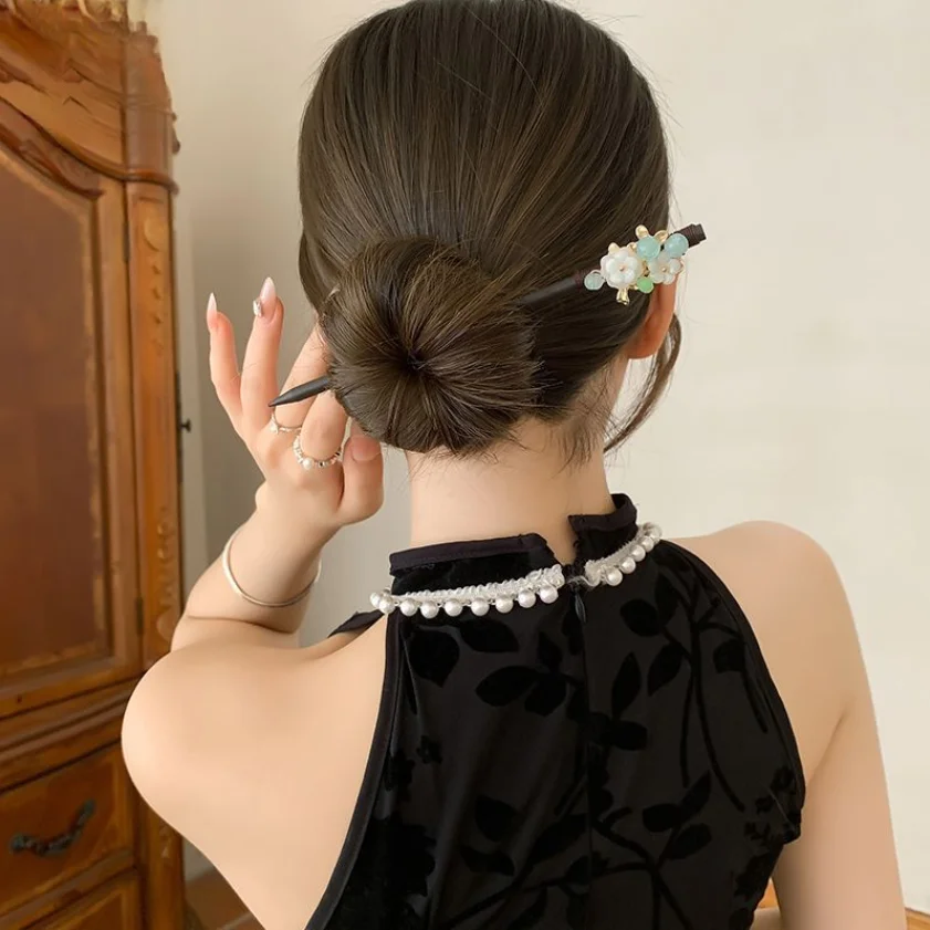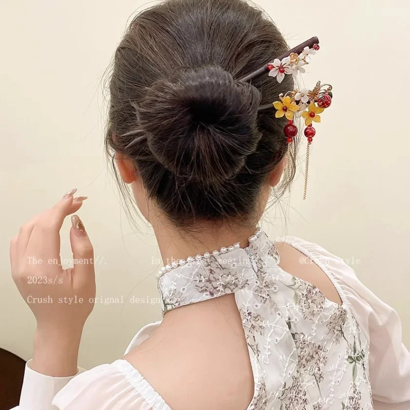 Retro Flower Hair Forks Long Tassels Wooden Hair Sticks Pearls Bead Step Shake Chinese Wedding Bridal Hairpins Clips Jewelry
