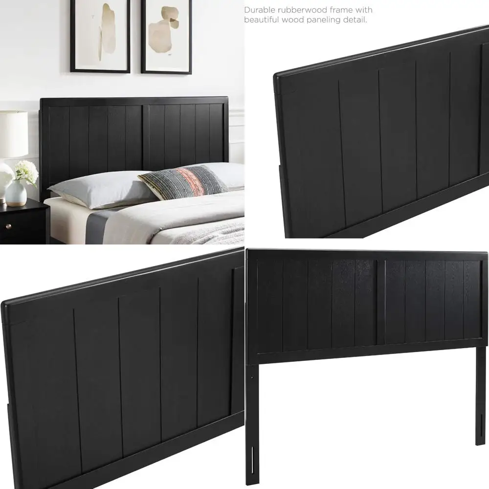 This mid-century headboard brings a retro modern style to your guest or teenager's bedroom with its wood paneling, organic aesthetics, and contemporary accents. It's designed to be compatible with the Billie and Margo bed frame collections, offering you the flexibility to create a custom look that suits your personal design style. Made from durable rubberwood and MDF veneer, this headboard provides a neutral backdrop for various bedding styles. It's a full-sized headboard that requires assembly and measures 56 inches wide, 0.5 inches deep, and 22.5 inches high, offering comfortable sleep and modern style to your bedroom.