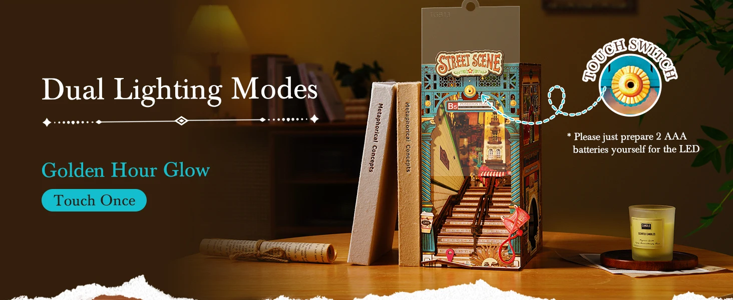 🌆【Step Into a Vibrant Urban Alley】Inspired by subway gateways and hillside streets, this book nook captures the curiosity, excitement, and hope of city walks. Its layered 3D design with dramatic forced perspective recreates the vibrant rhythm of a European cityscape in miniature form.