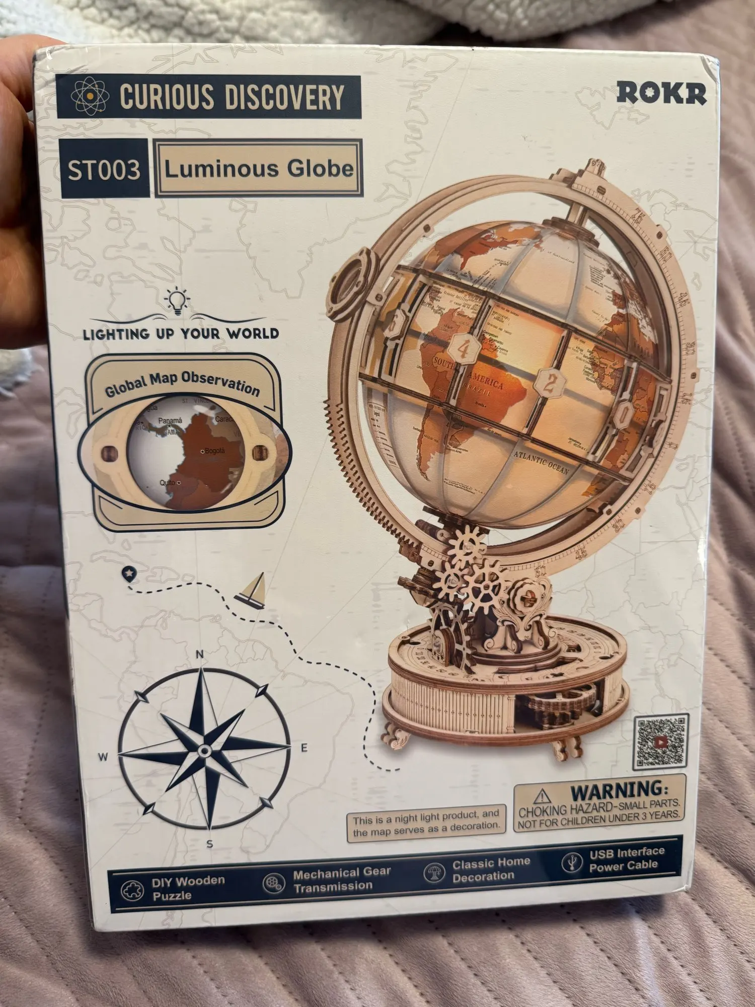- **Stunning Luminous Globe Puzzle:** Discover the perfect 3D wooden puzzle of the year with this captivating globe, featuring 180 intricately pre-cut wooden blocks. Equipped with a built-in LED light, it transforms into a stunning desk lamp when illuminated, allowing you to explore the world and admire its beauty even in the dark.