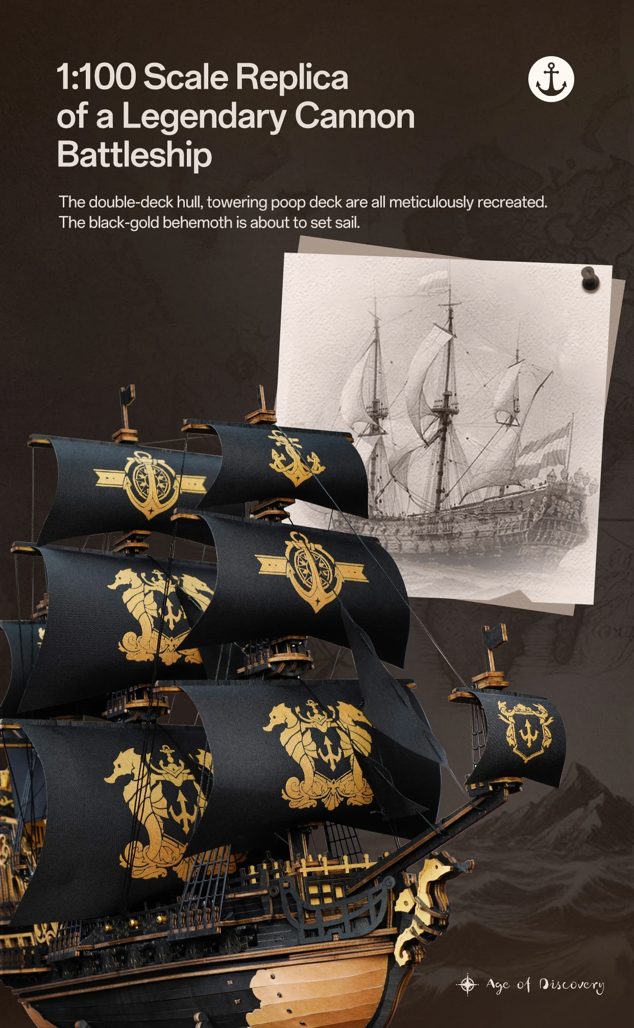 A meticulous 1:100 scale replica that honors the era of sail-powered warships.