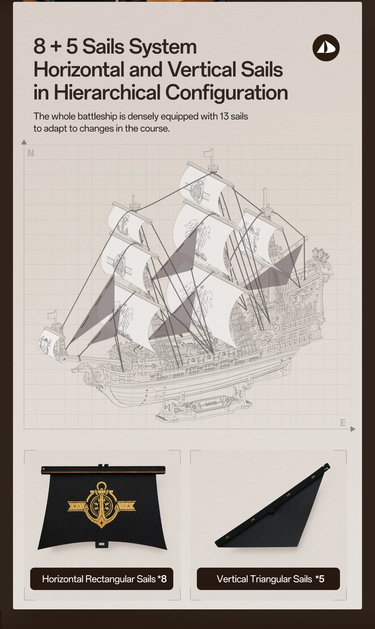 8 Horizontal & 5 Vertical Sails – Engineered for Navigation Needs