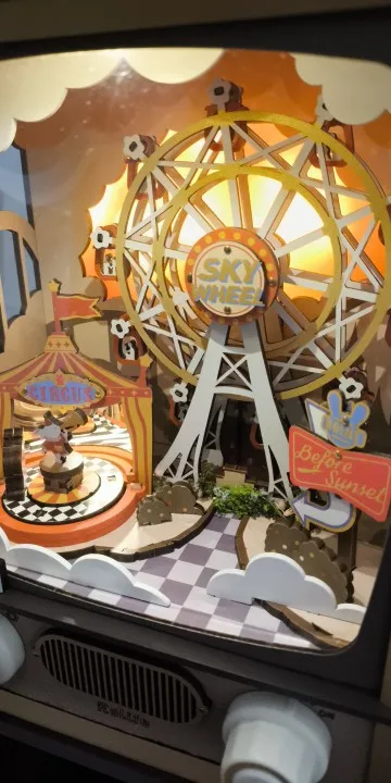 Robotime Rolife Music Box Sunset Carnival with Light 3D Wooden Puzzle Kits Toys for Children Kids Birthday Gifts AMT01