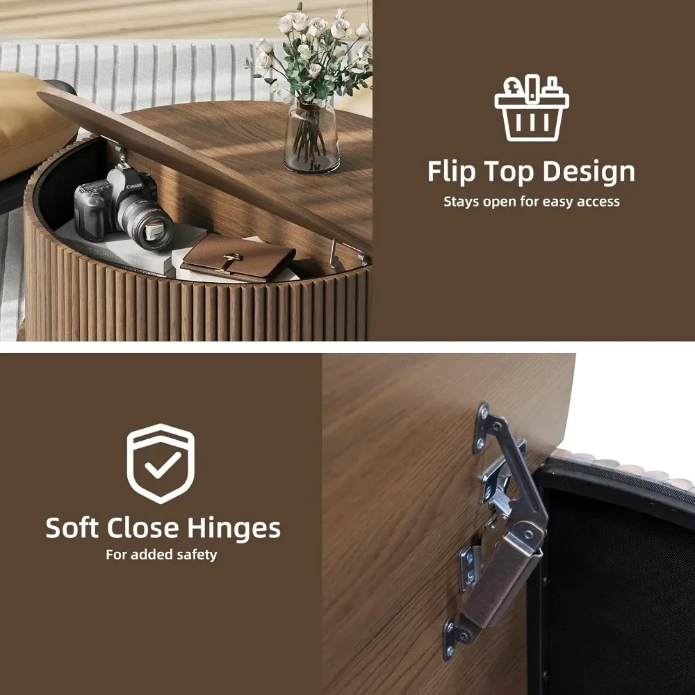 • 【Stylish and Practical】The round coffee table features lift top design,allowing you to work,write or dine comfortably on the sofa.Its mid-century modern style adds a retro feel to any space
