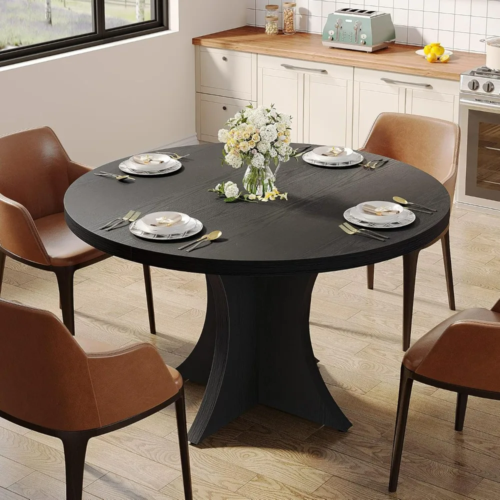 - [Round-Shaped Design]: Featuring a round design, this dining table has no sharp edges, making it safer, especially in households with children. In addition, the round kitchen table is space-efficient compared to rectangular ones, and promotes easy conversation, whether you're in a dining room or a meeting room.
