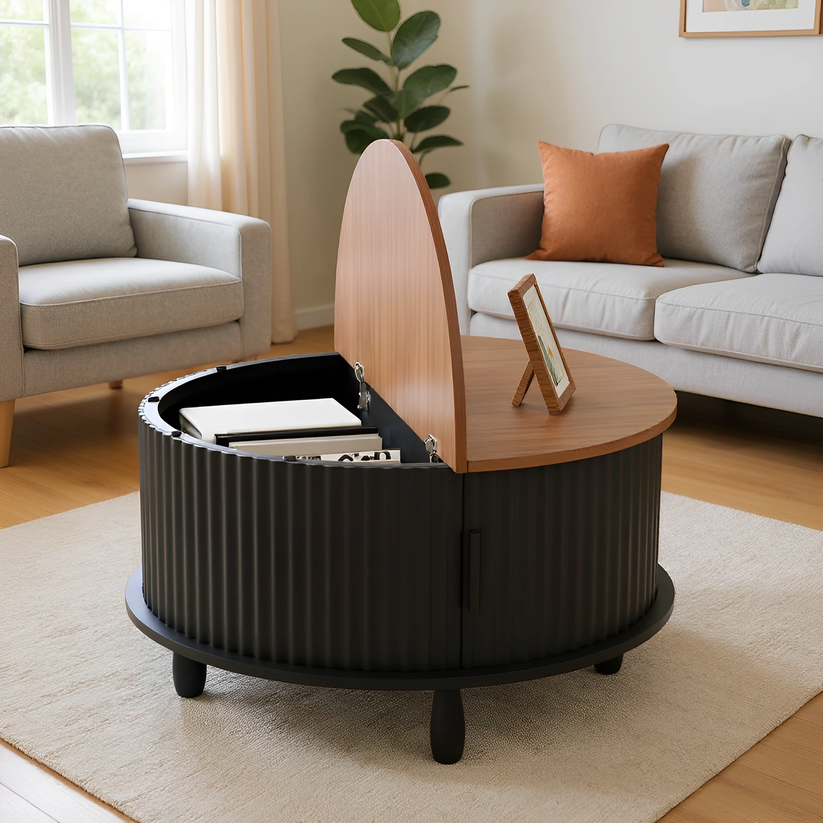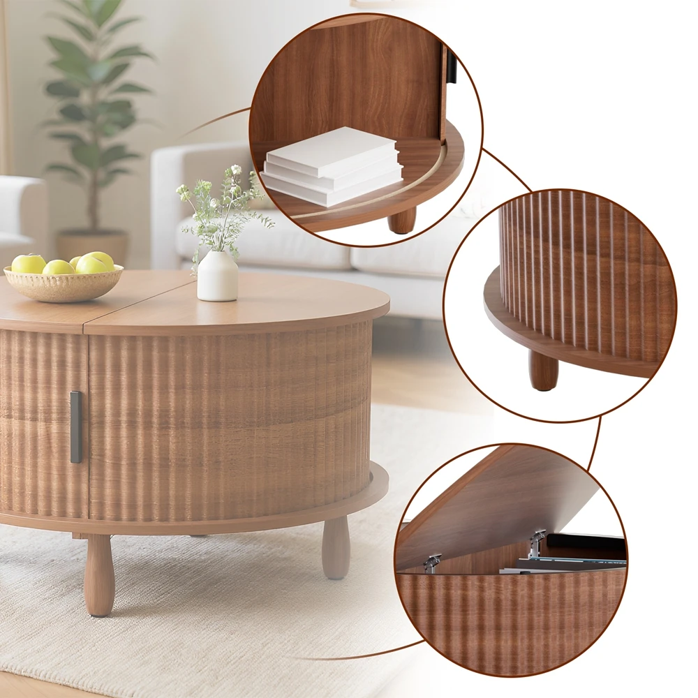 Large storage space: this lift-top farmhouse coffee table with 2-tier and sliding door design, makes it easy to organize and neatly store blankets, pillows, books, notebooks, toys, snacks, game consoles, ensuring your living room remains tidy.