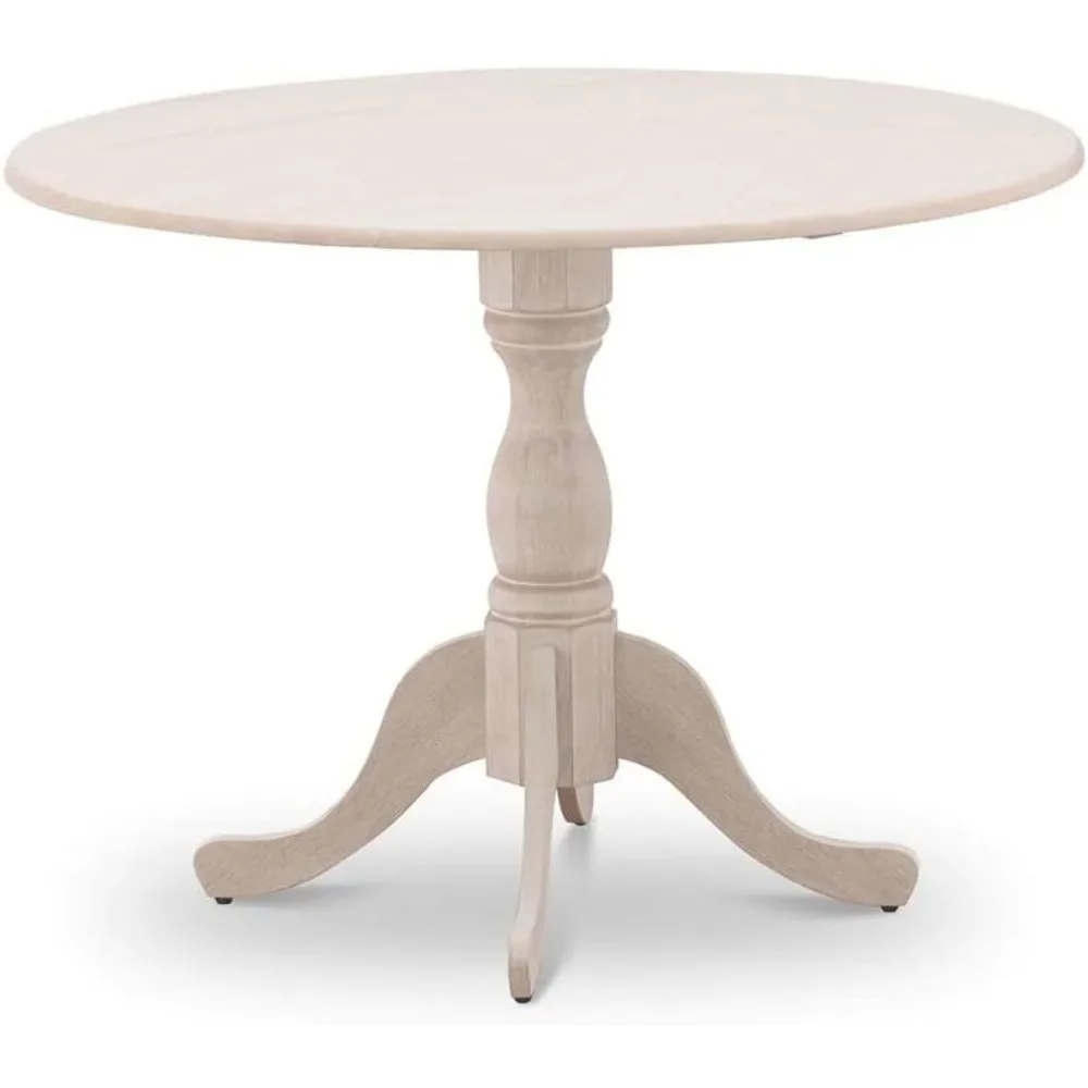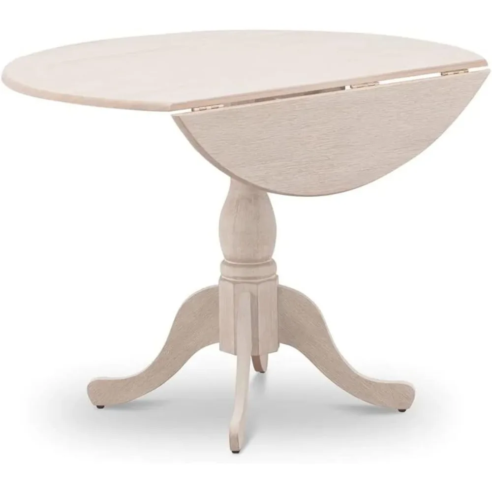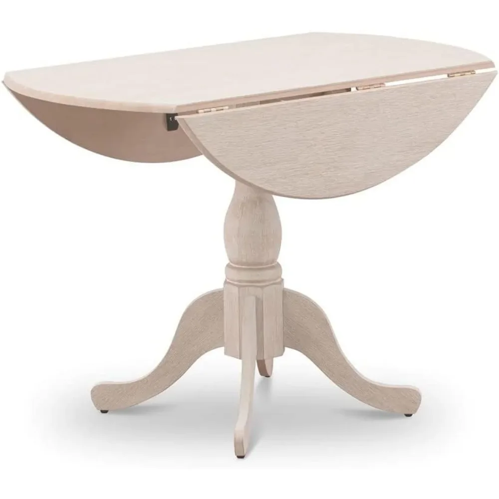Here's a rewritten product description based on the provided information: This dining room table offers a modern and stylish design that will enhance the aesthetic of any kitchen. Its unique appearance and clean lines contrast with outdated options, making it a standout piece in any dining space. The table features a Wire Brushed Butter Cream finish on both the top and pedestal legs, creating a beautiful color combination. Crafted from premium-grade rubberwood, an Asian wood, the table boasts a durable and stable pedestal design. Assembly is straightforward with the provided comprehensive guidebook, and the table arrives in two separate boxes for easy setup. The dimensions of this elegant dining table are 42 inches in length and width, with a height of 29.5 inches.