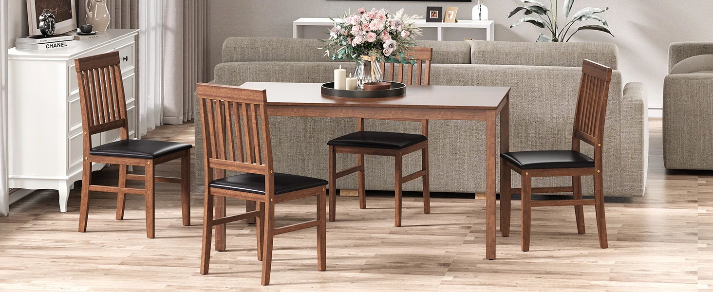This 44-inch solid wood dining table comfortably seats 4-6 people, offering a cozy and functional addition to your home. Made from enduring rubberwood, it supports up to 300 lbs, ensuring excellent stability. The simple farmhouse design, paired with a warm, distressed brown finish, creates a welcoming and elegant atmosphere. Whether for dining or working, it provides a comfortable space for family gatherings and special moments.