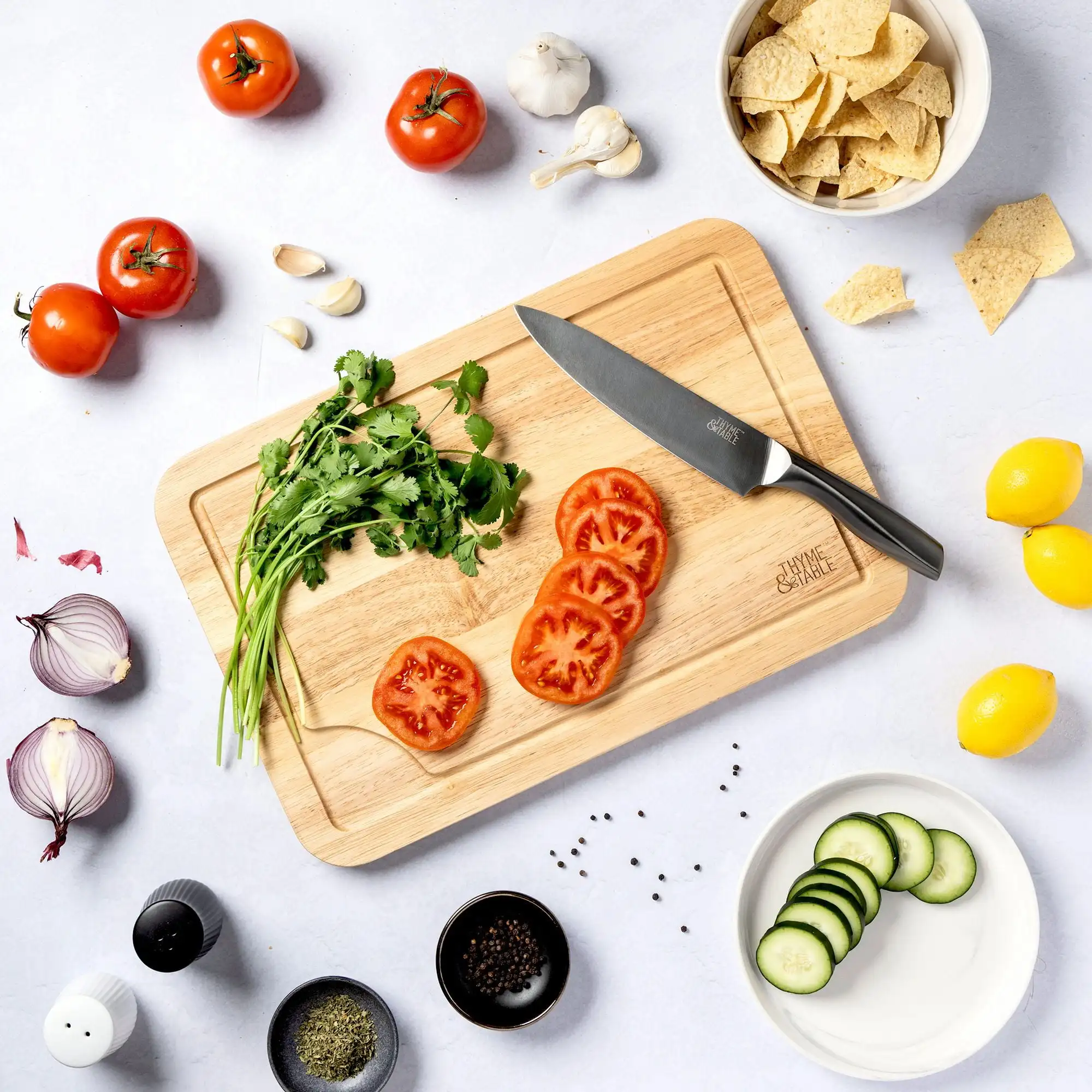 Premium rubberwood – Durable, long-lasting construction for reliable food prep.