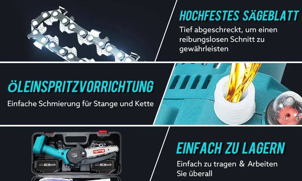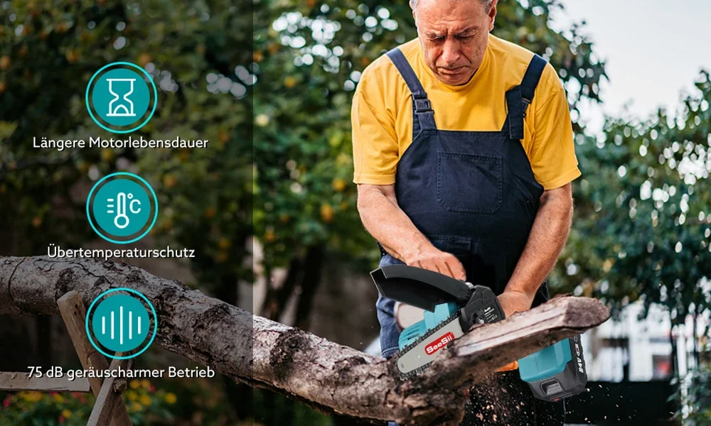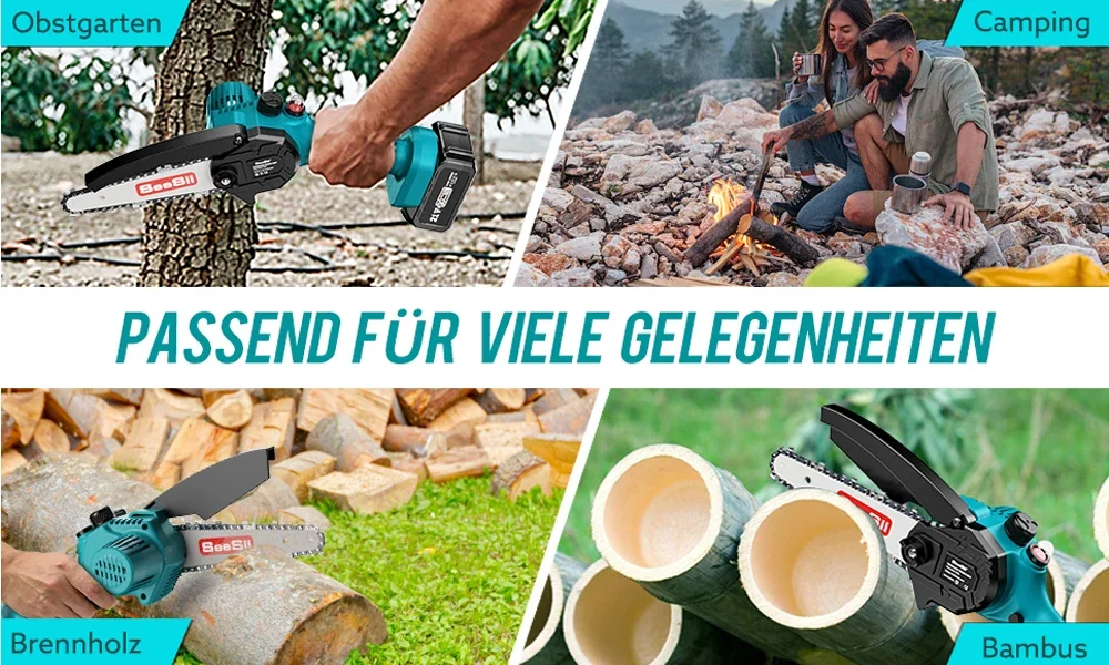 Mini chain saw saves time and effort: Are you still worried about decorating your garden? With the Seesii cordless chainsaw, you do not have to spend months removing branches like with the conventional saw. Target branches in gardens, yards and forests can be cut quickly. It is more efficient, lighter, more durable and can be used by beginners, women and seniors alike.