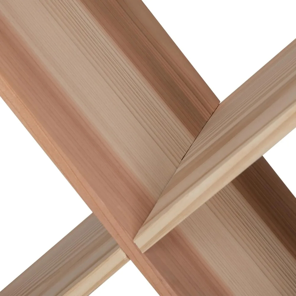 - "X" Shaped Cubic Wine Rack: The bottle rack adopts an X-shaped internal structure, which is strong and durable and can stably support heavy objects. This wine rack can support up to 66 lbs. The overall size of this wine rack is 19.7"L x 10.2"W x 19.7"H.