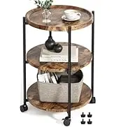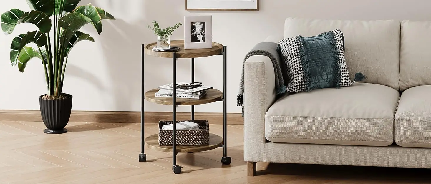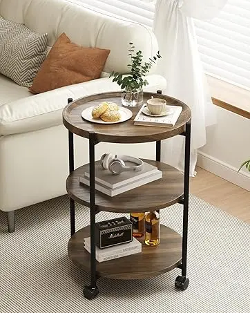 Side Table, 3-Tier Modern End Table with Wheels, Small Round Nightstand Bedside Table for Living Room, Bedroom, or Small Spaces-