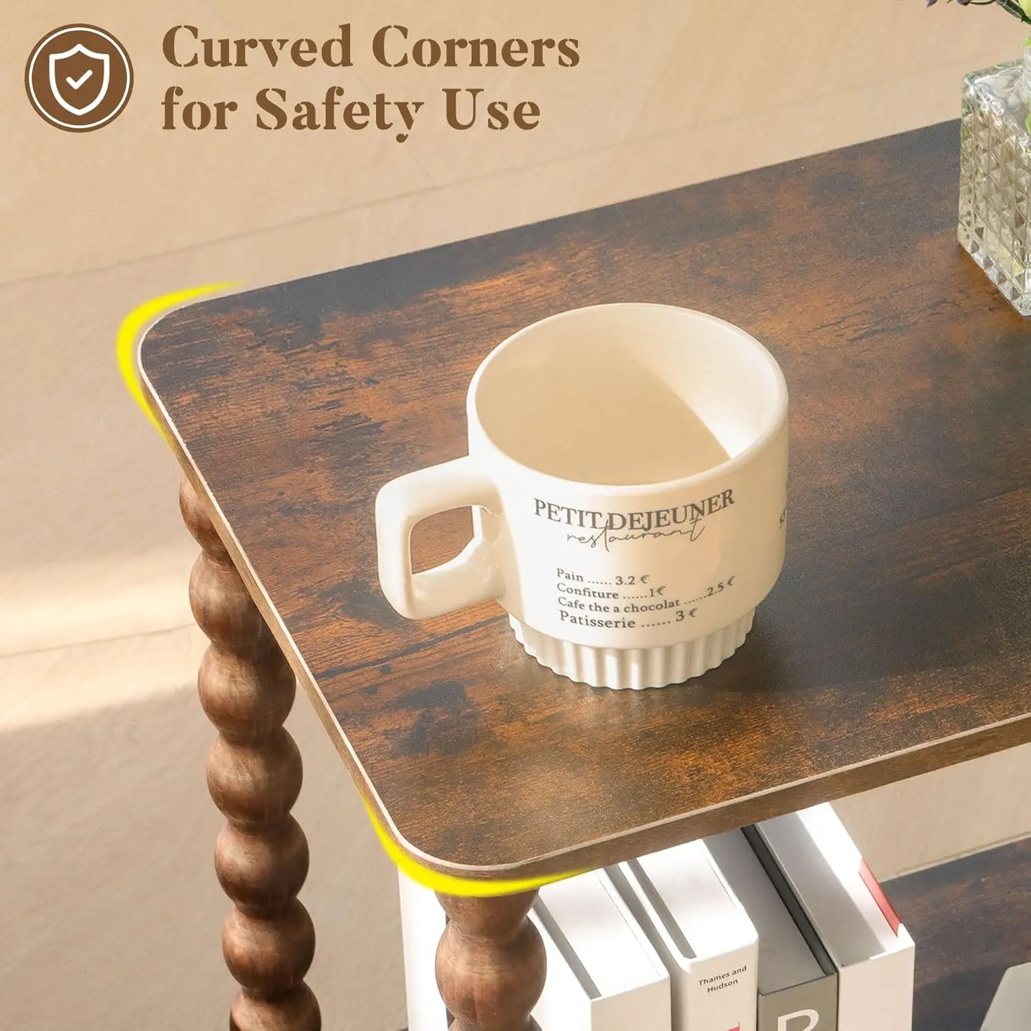 Side Table, Small End Table with Storage Shelf, 2-Tier Small Coffee Tables Living Room for Bedroom, Narrow Spaces(Rustic Brown)