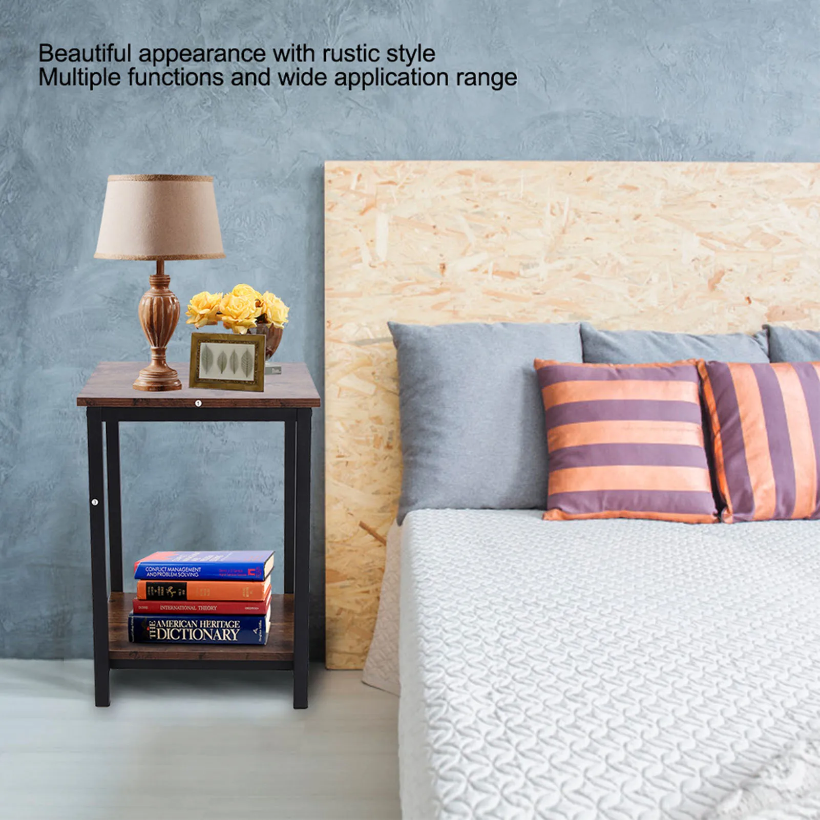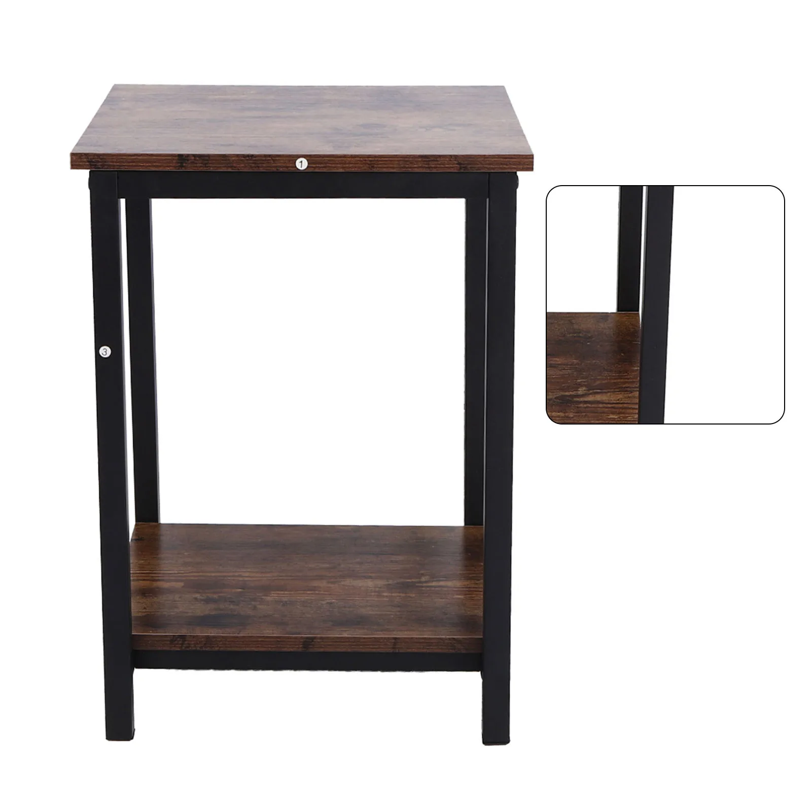 Features 1、You can place this rustic style end table near the sofa or bed, the beautiful product will not be obtrusive in any position. 2、Perfect as nightstand, end table, coffee table, snack table, telephone table, sofa table, ect. Fitting in living room, bedroom and office. 3、The retro wooden upper board, with the robust iron frame and the bottom wooden shelf maximizes its storage function. 4、Easy to install, save installation time and cost, disassembly is also convenient and fast, easy to store. 5、Using high quality wood, wear‑resistant, easy to wash, environmental protection, can use it with confidence.