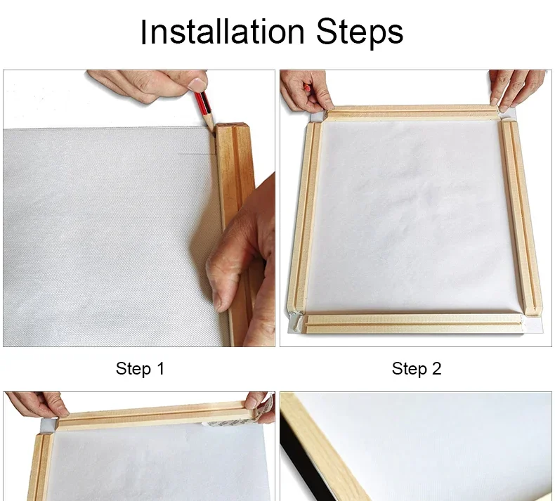 Make sure the corners and edges of the wood surface match the edges of the painting. (the inner frame must be seamless) this is very important.