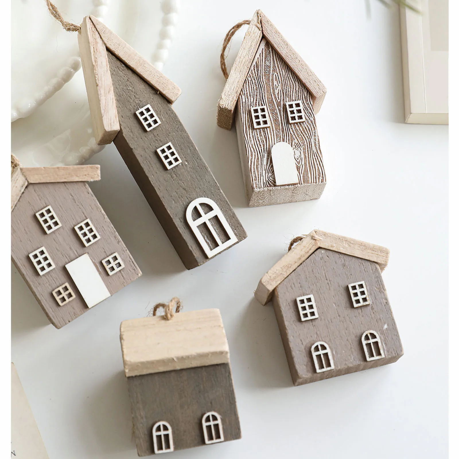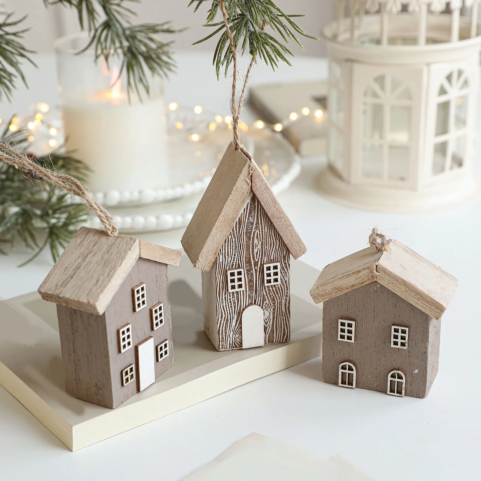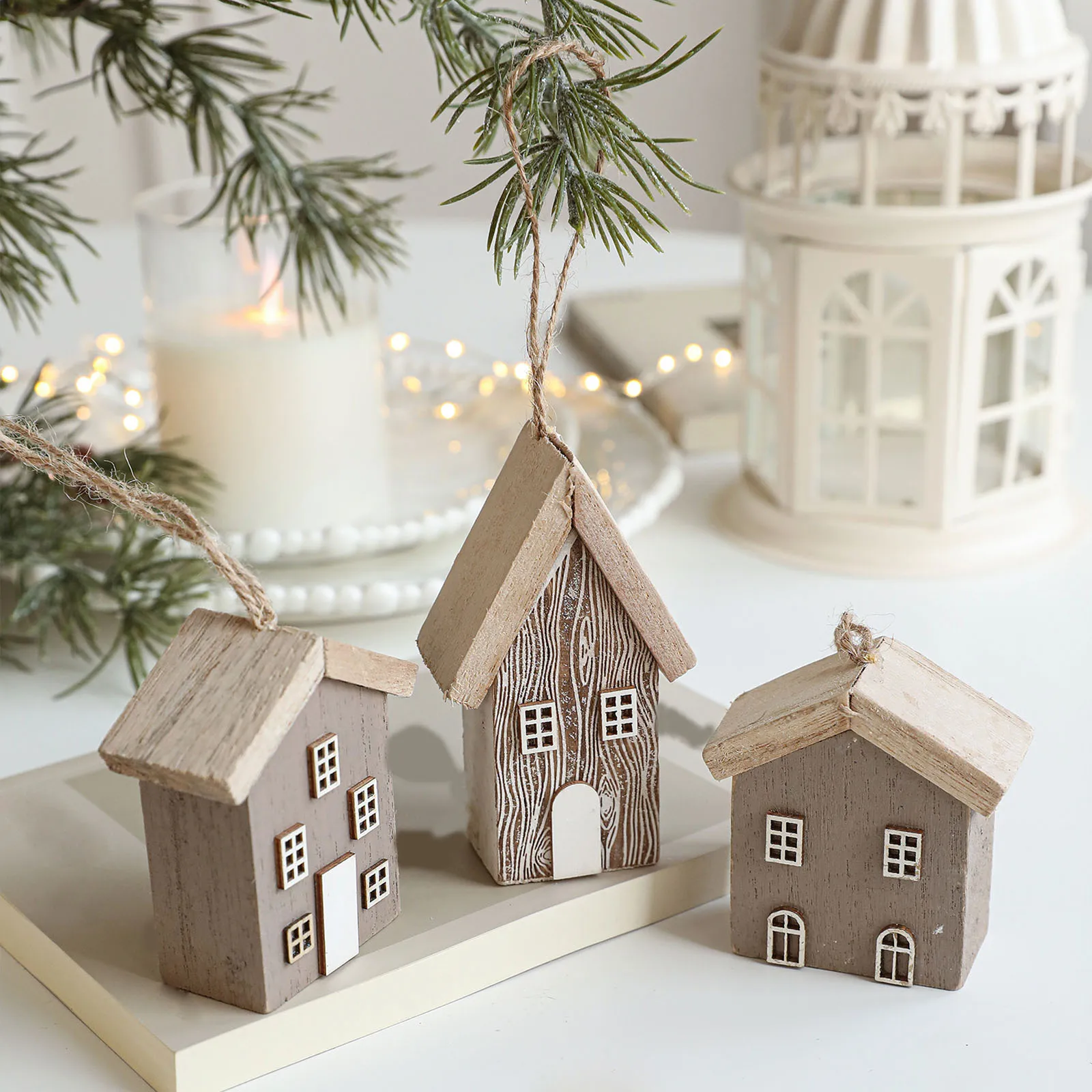 Solid Wood Christmas House Small House Christmas Tree Log House Creative Layout Decoration Ornaments