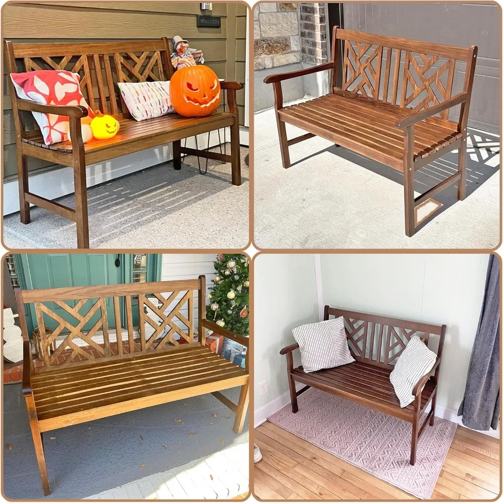 This outdoor bench is crafted from 100% premium poplar wood with a durable PU paint finish. Poplar wood is known for its strength and attractive grain, ensuring the bench's longevity and aesthetic appeal. The bench is designed to withstand various weather conditions, thanks to its special PU paint treatment that enhances water resistance and insulation. For extended outdoor use, it's recommended to cover the bench when not in use to prolong its life. The bench features a generous 47-inch seat that measures 44.3 inches wide by 18.1 inches deep, providing ample space for two to three people to sit comfortably without feeling crowded. The wide, curved armrests offer additional comfort for your arms, while the slightly reclined backrest promotes relaxation. The bench can support a maximum load of 600 pounds. With its classic design and exquisite craftsmanship, this wooden bench is both charming and attractive. Its timeless style and color palette make it a versatile addition to any decor, complementing a variety of furniture styles. It's highly recommended for those seeking a stylish and durable outdoor seating option. The heavy-duty patio bench has dimensions of 46.9 inches wide by 19.7 inches deep by 35.4 inches high and can support a maximum load of 500 pounds. The package includes all necessary parts, accessories, tools, and instructions for easy assembly. Sophia & William offer a 365-day replacement policy for any damaged or missing parts, ensuring customer satisfaction.