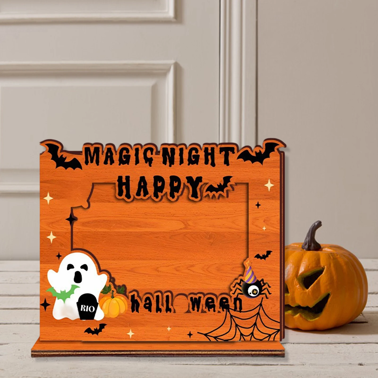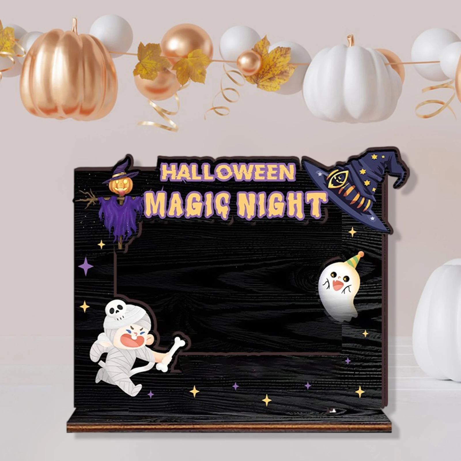Halloween Picture Frame Wooden Holiday Photo Frame Tabletop Decorations for Living Room Home Party Supplies
