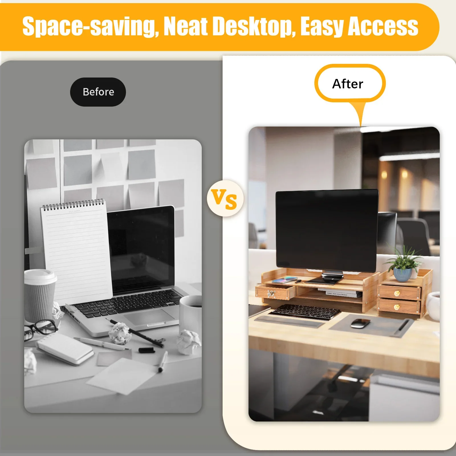 More stable: The thickened wooden board (0.35 inches, 0.2 inches), reinforced screws, and rectangular structure make this computer frame stable, with a good loadbearing capacity of 11 pounds, making it easy to place.